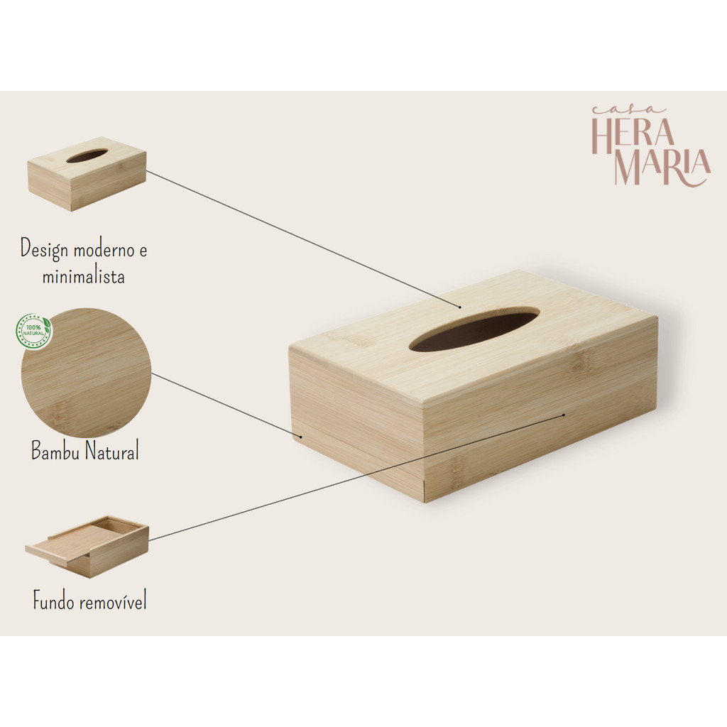 Caixa Porta Lenço De Papel e Umedecido Bambu Decorativo