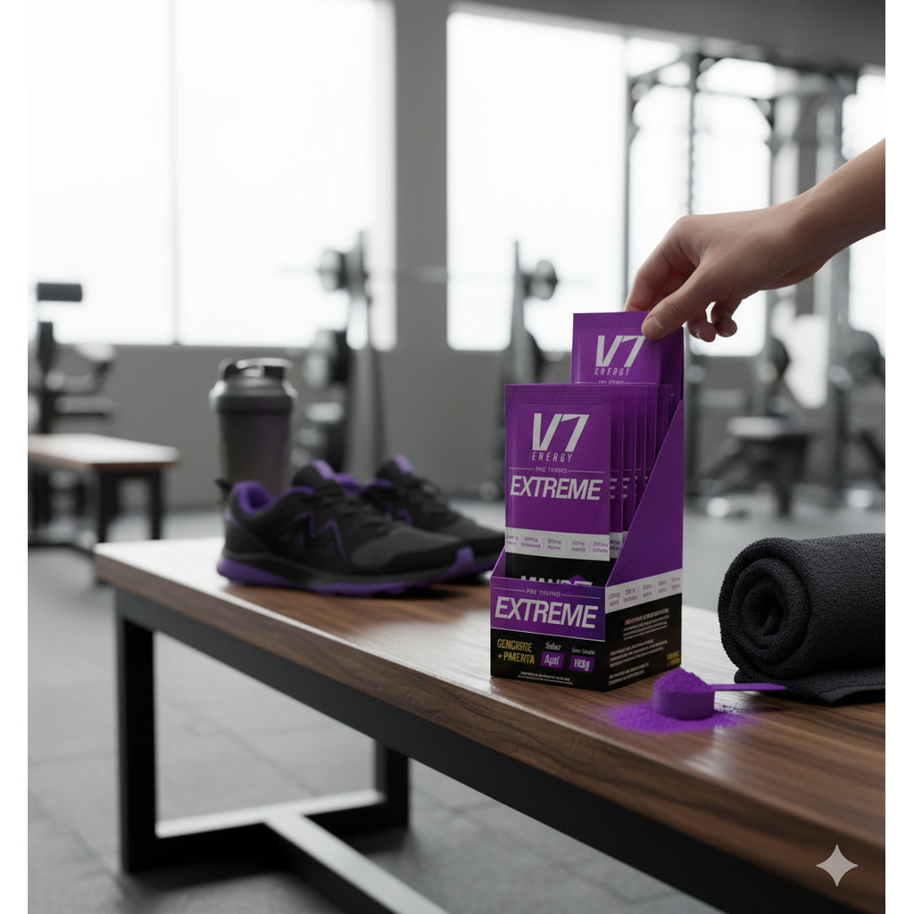Caixa Pré Treino V7 Extreme Sabor Açai Sache 10 Em 10G Cada - V7 ENERGY