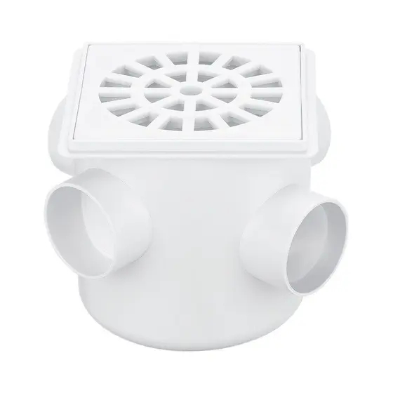 Caixa Sifonada Branca Quadrada Com Grelha Ralo 100mm Esgoto Banheiro Sifão DN 100x100x50mm - HERC