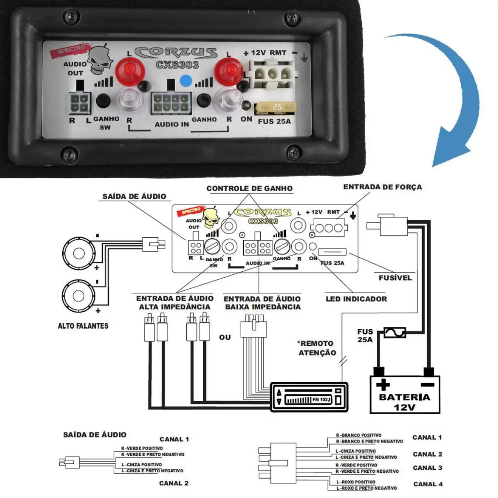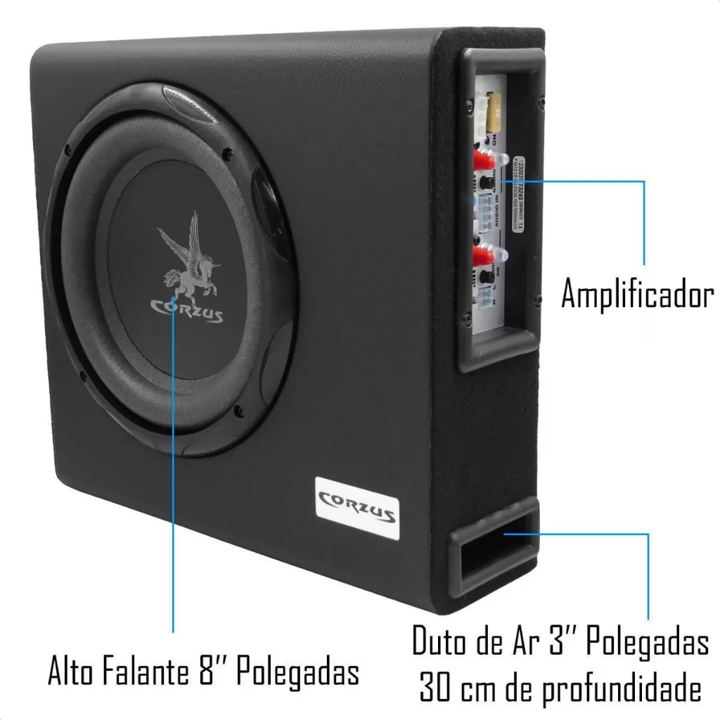 Caixa Som Amplificada 3 em 1 Corzus CXMS303 Slim 350W Rms Sub Ativo + Potencia p/ Falantes de Porta