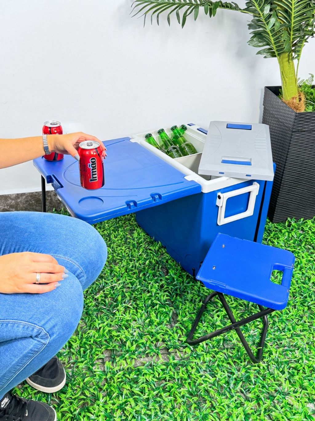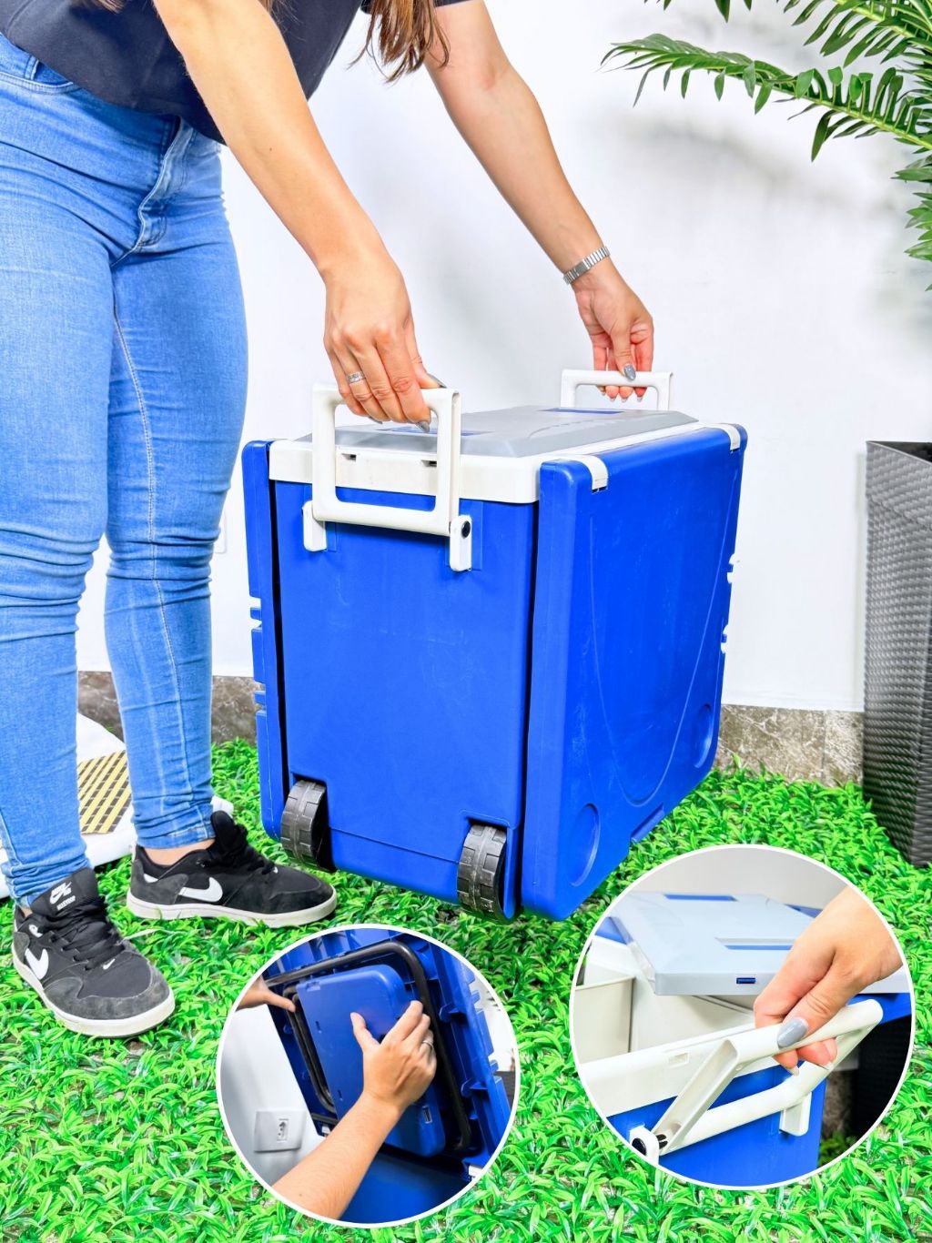 Caixa Térmica 32L Azul, Rodinhas, Fechamento Hermético e Recipiente Interno Removível - Cooler para Bebidas