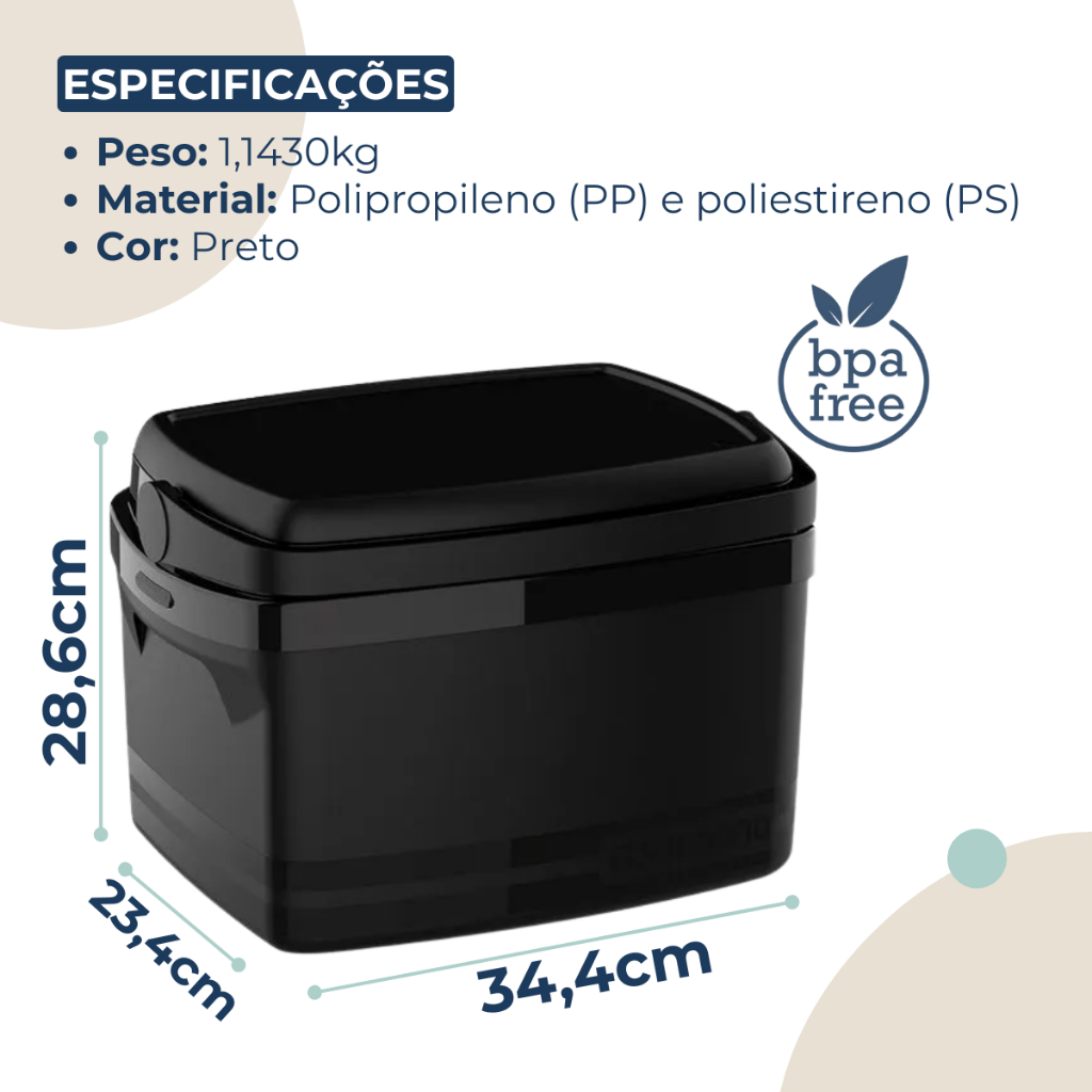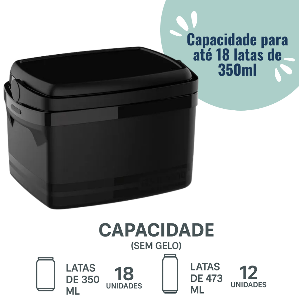 Caixa Térmica Cooler 12 Litros Preto Médio Com Alça Soprano