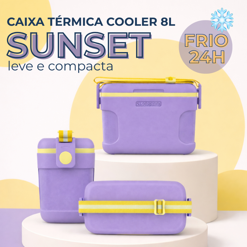 Caixa Térmica Cooler 8 Litros Com Alça Ajustável Retrô Vintage Sunset Soprano