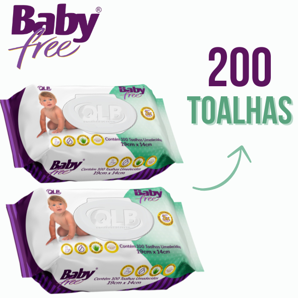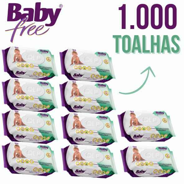 Caixa com 10 Lenços/Toalhas Umedecidas Baby Free c/ 100 Unidades Cada – Tampa FlipTop