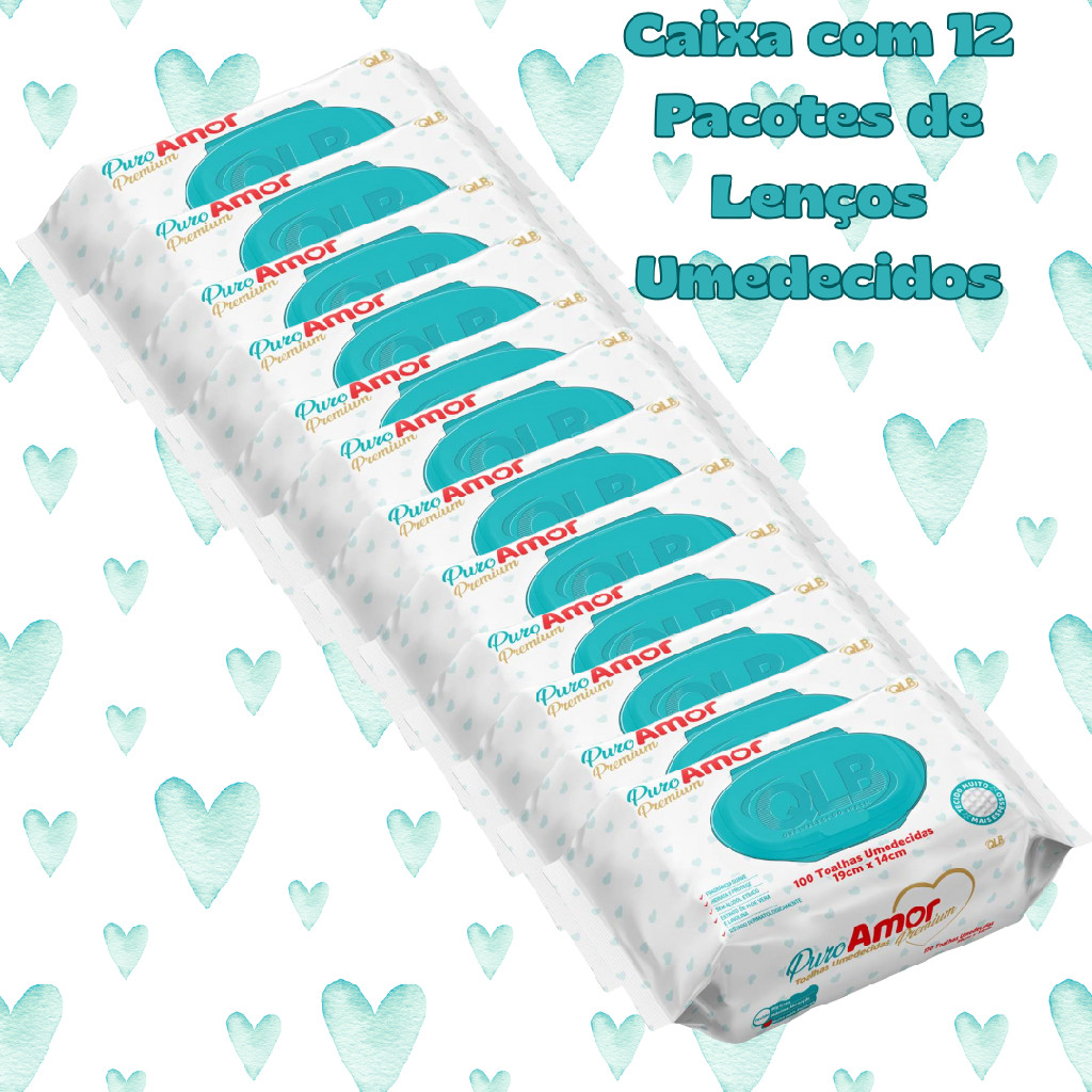 Caixa com 12 Pacotes de Toalhas Umedecidas Puro Amor Premium – Total 1200 Unidades
