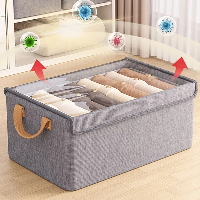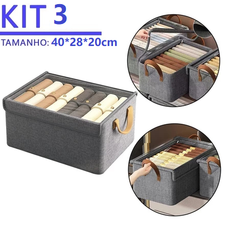 Caixa de Armazenamento Dobrável Cinza com 7 Divisórias à Prova d’Água e Tampa Transparente