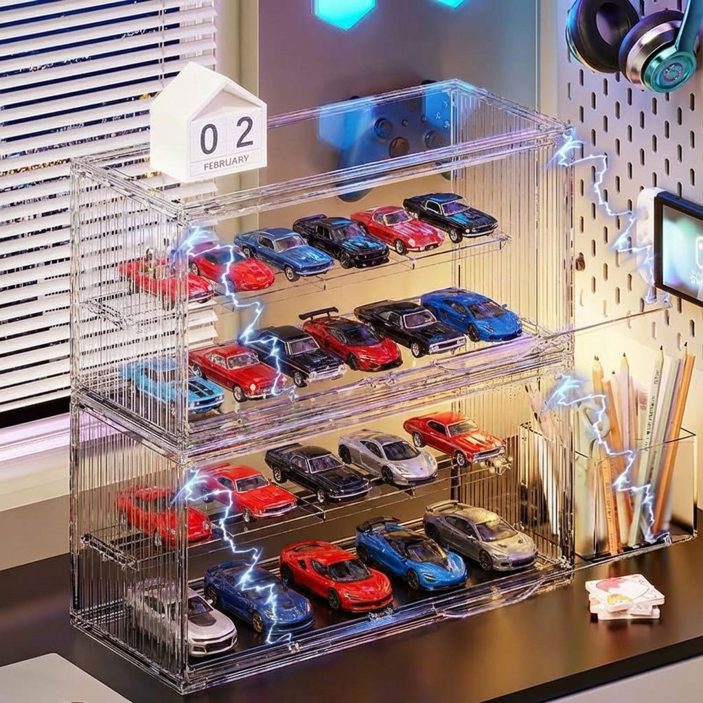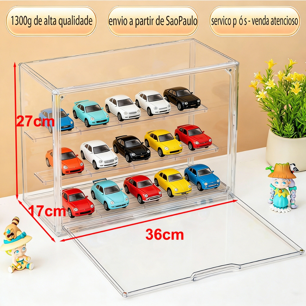 Caixa de Exibição Acrílica Transparente Grande com Tampa para Carros e Bonecos Marvel Colecionáveis