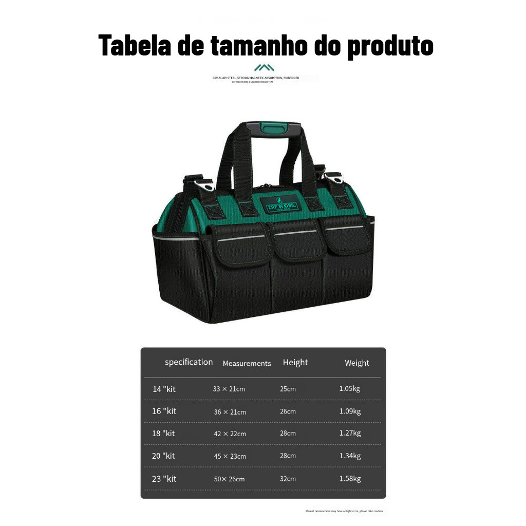 Caixa de Ferramentas Profissional 14/16/18/20/23 Polegadas - Bolsa de Armazenamento Multiuso para Ferramentas