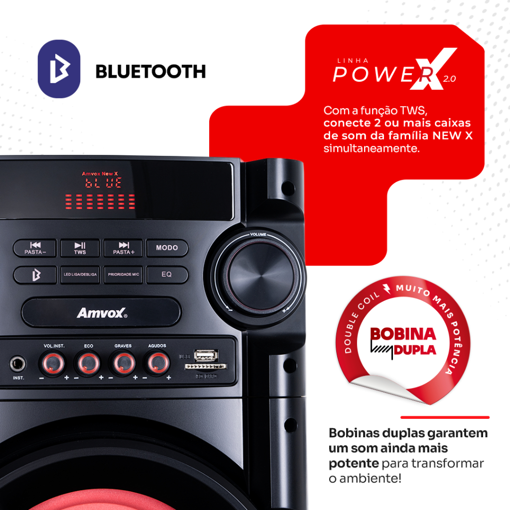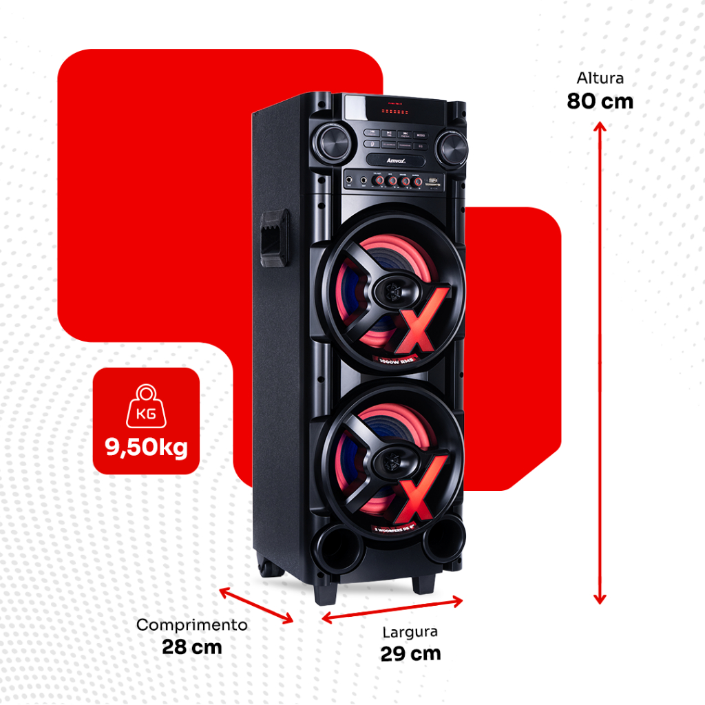 Caixa de Som Amplificada ACA 1000 NewX Torre Amvox 1000W Duplo Woofer de 8" TWS Bivolt Bluetooth