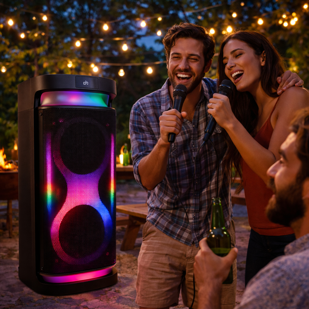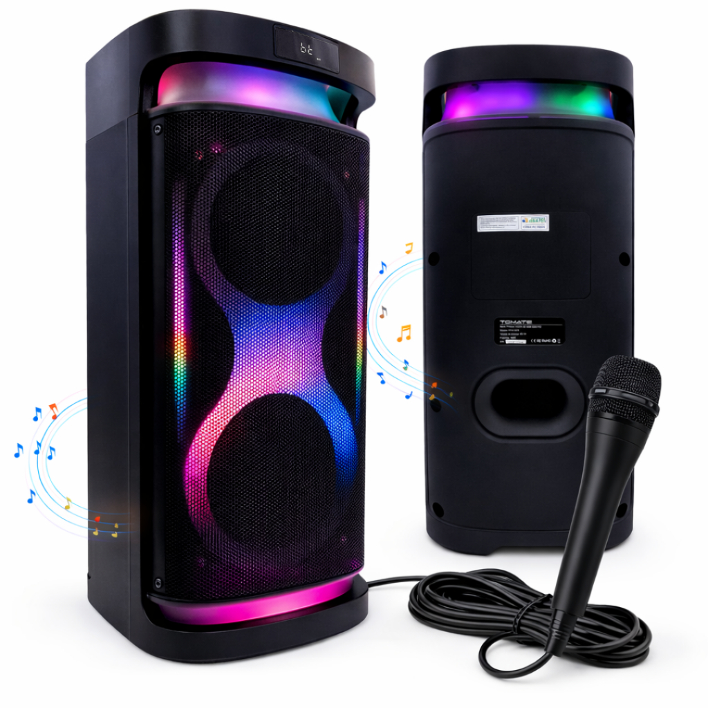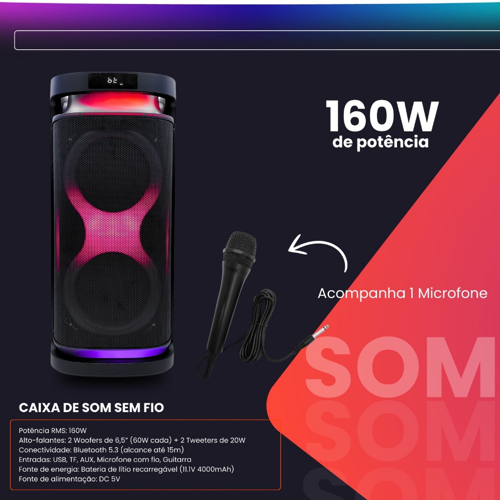 Caixa de Som Bluetooth 160W RMS LED RGB Rádio FM 4000mAh Recarregável TWS com Microfone para Karaokê