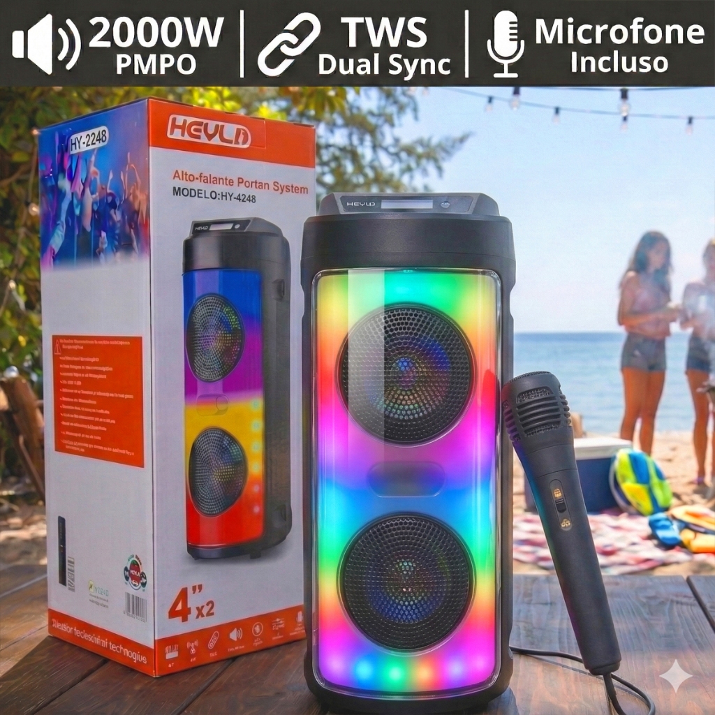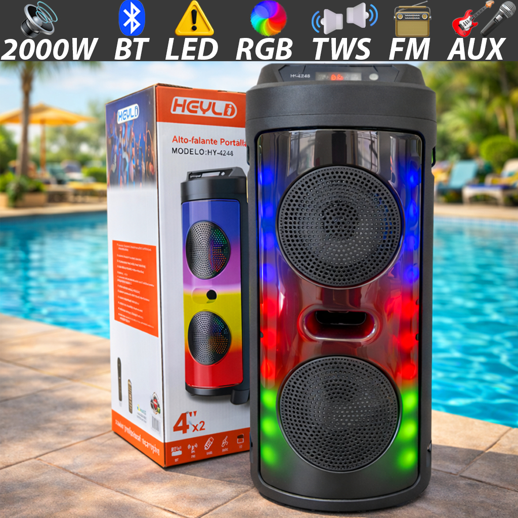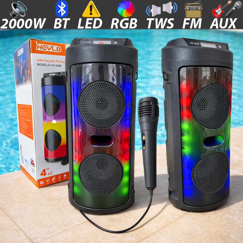 Caixa De Som 2000W Potente + Microfone p/ Karaokê TWS LED RGB - Festa Garantida / Envio Imediato