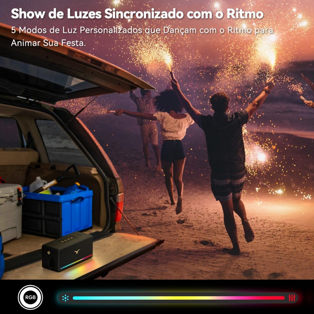 Caixa de Som Bluetooth 80W IP67 TWS Estéreo LED Portátil Impermeável para Festa – Envio Brasil