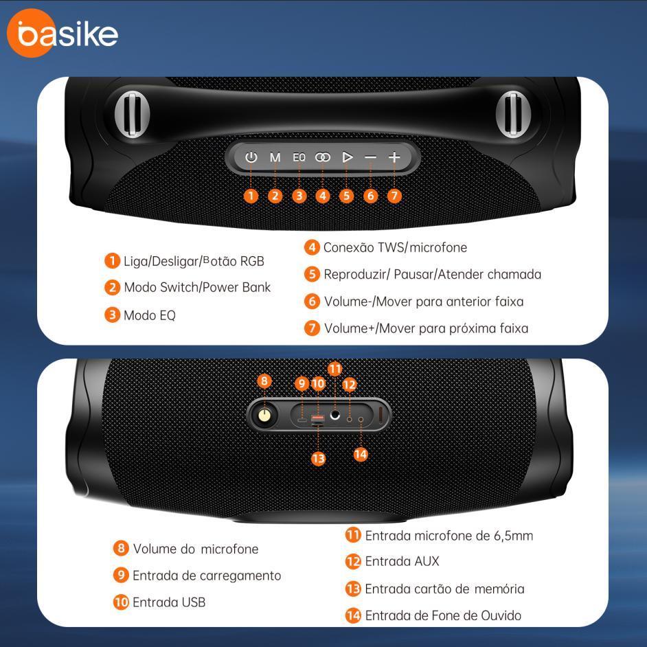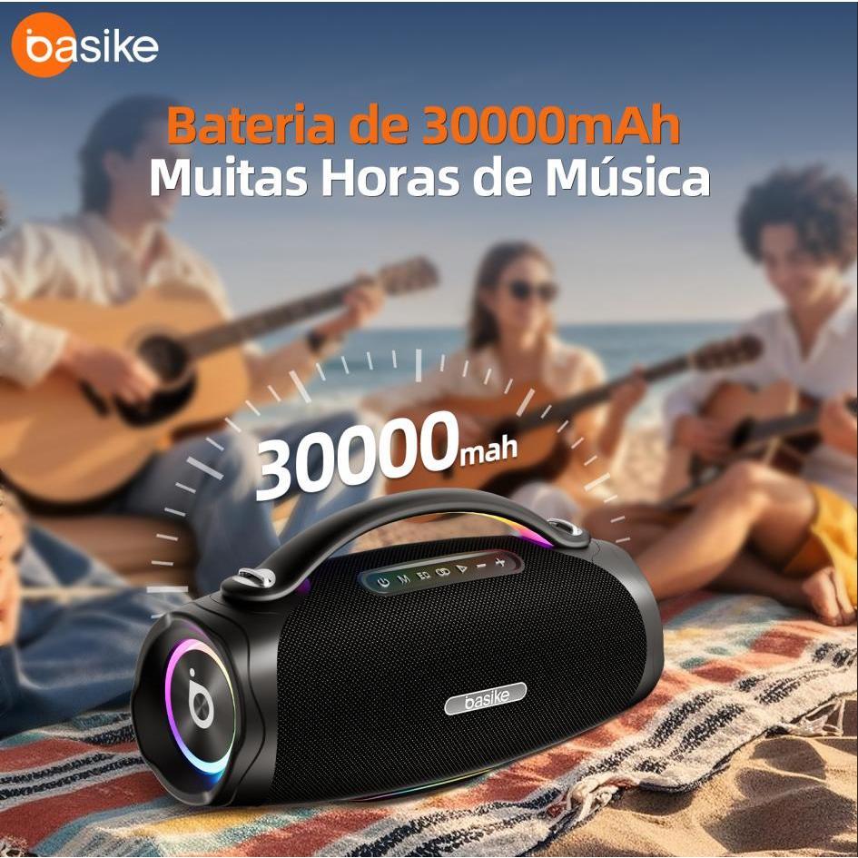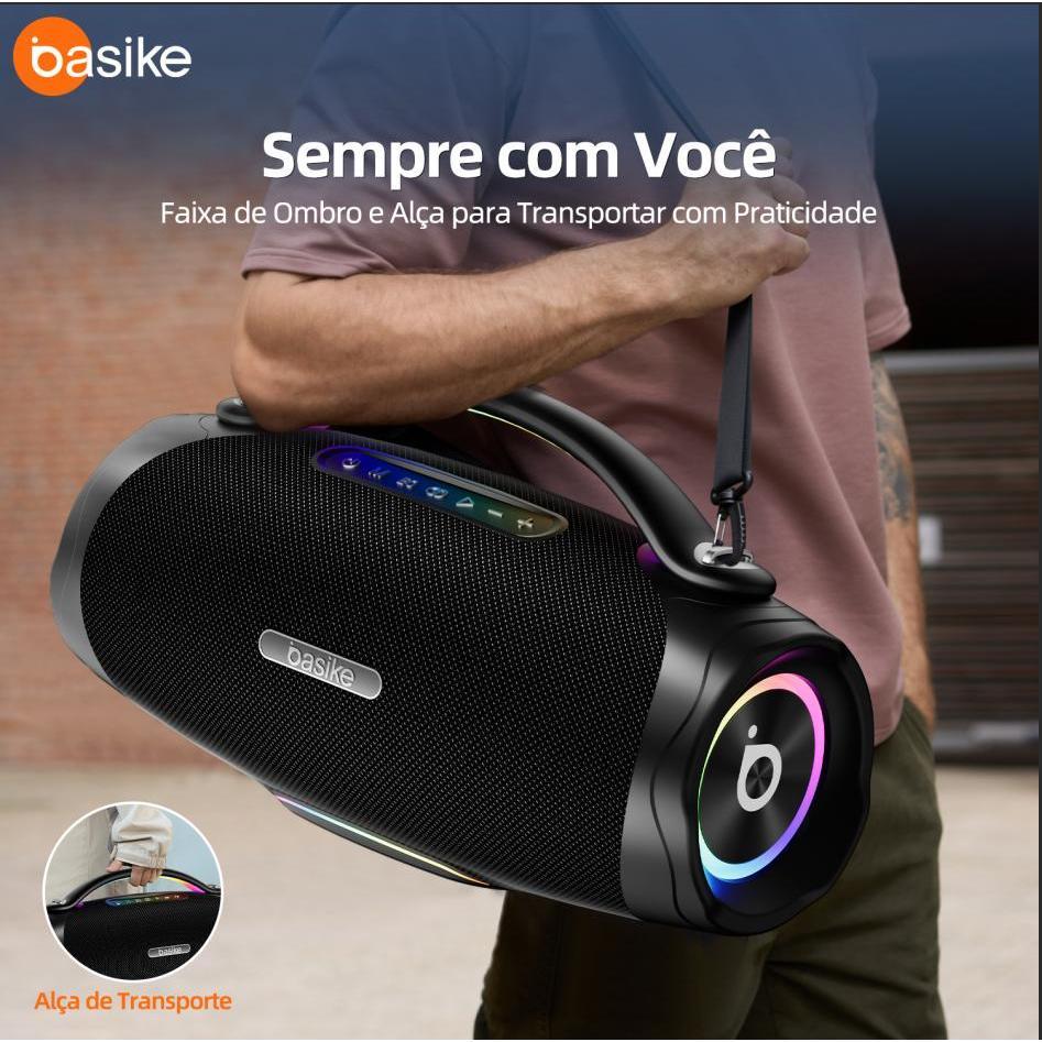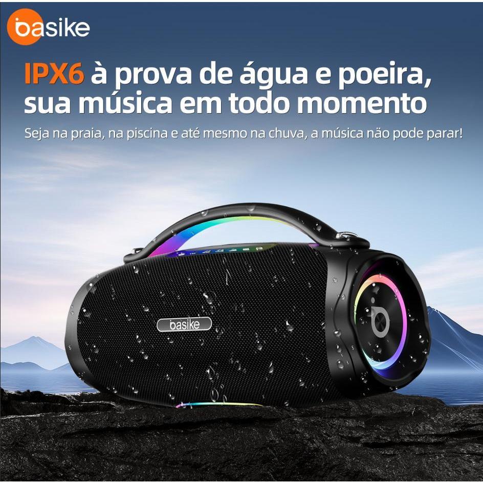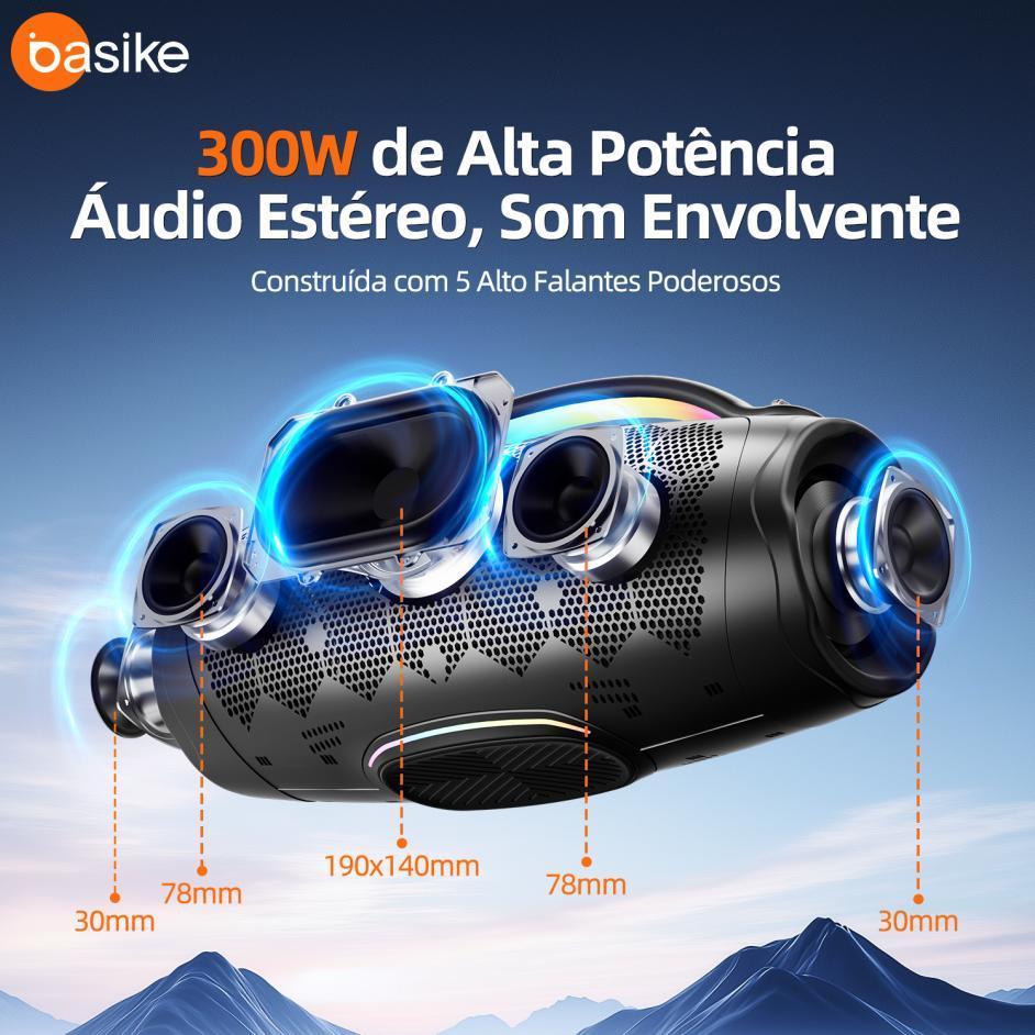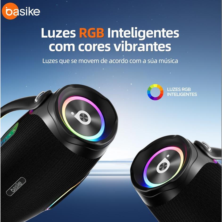 Caixa de Som Bluetooth Basike Ba-RAD181 300 W RMS Bateria 30000 mAh TWS IPX6 e Luzes RGB