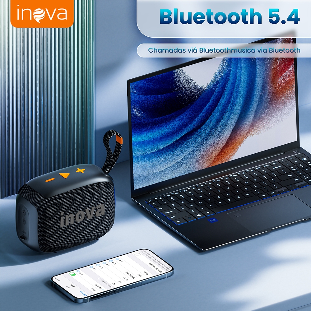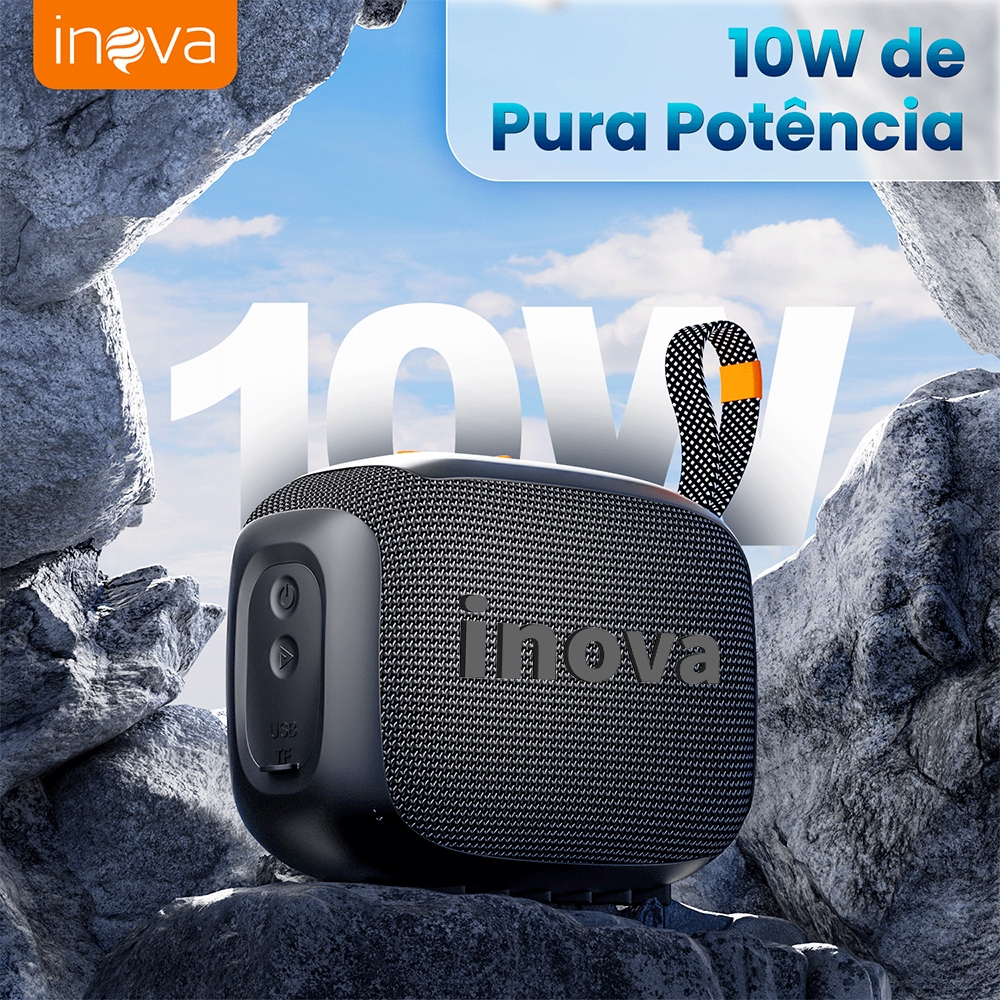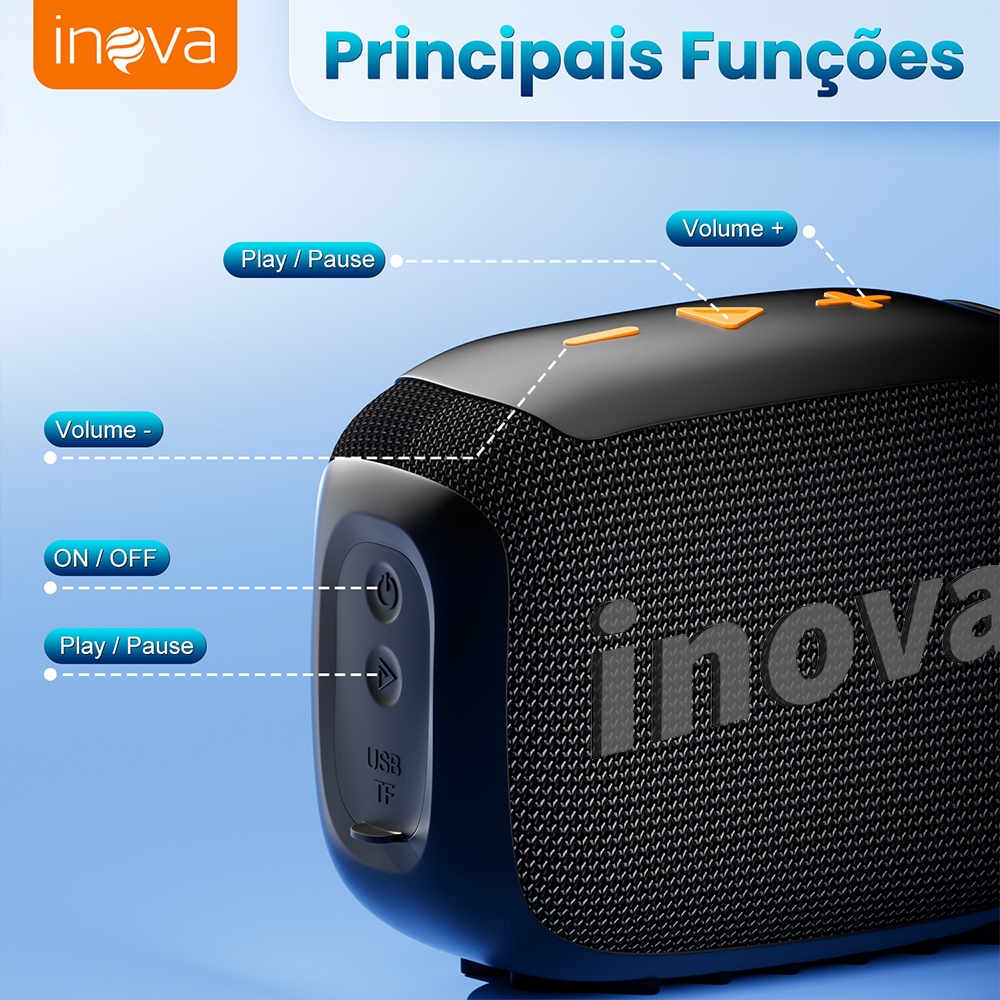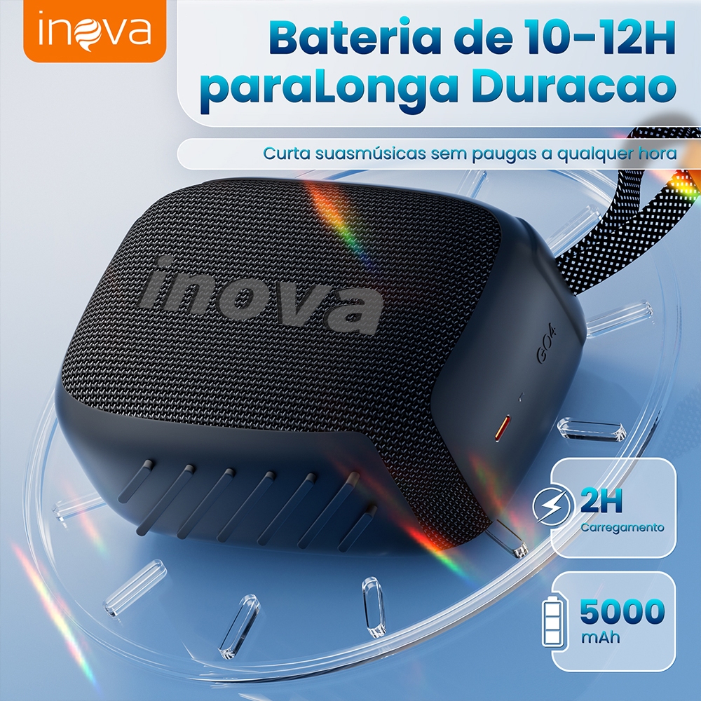Caixa de Som Bluetooth Inova GO4 IP67, À Prova d'água, Autonomia de até 7 Horas Wireless Bluetooth 5.4 Speaker Portátil