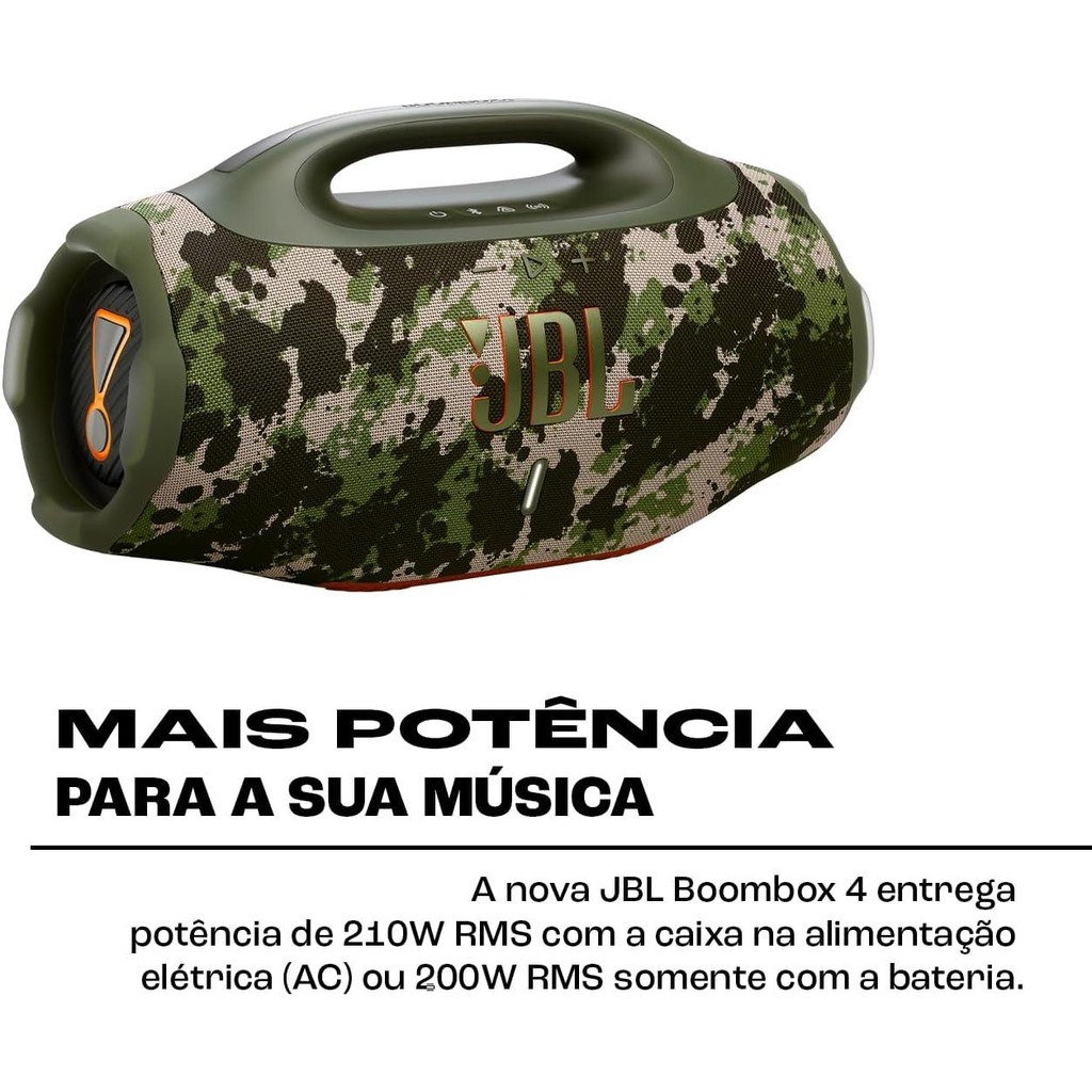 Caixa de Som JBL Boombox 4 Som Potente Resistente à Água e Poeira Camuflada