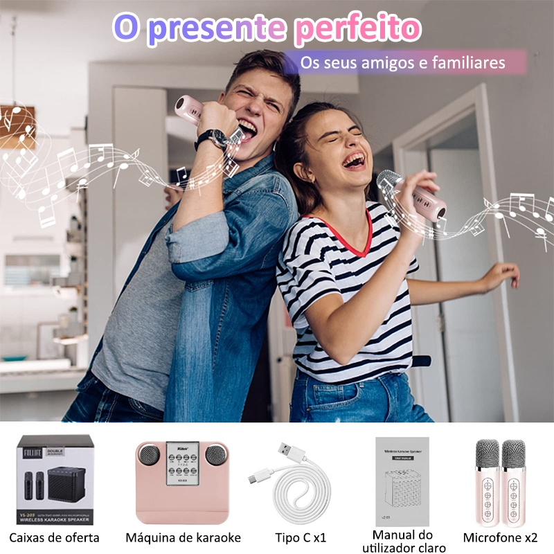 Caixa de Som Bluetooth Karaokê Com Dois Microfones Alto-falante de Potência Alta Qualidade de Som