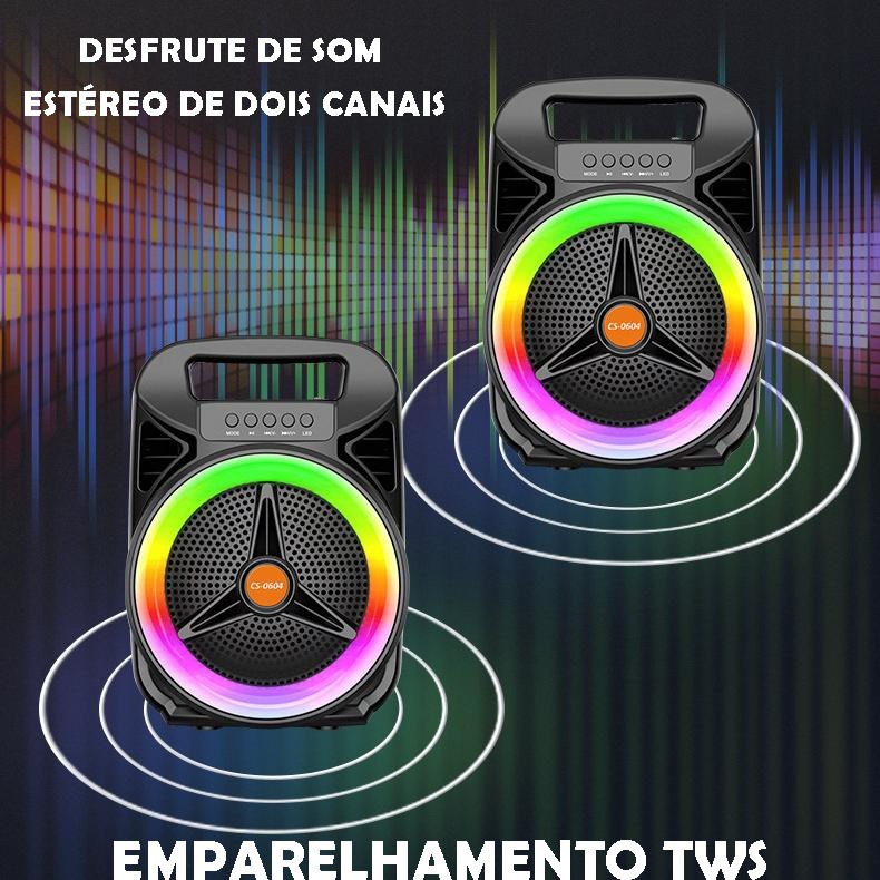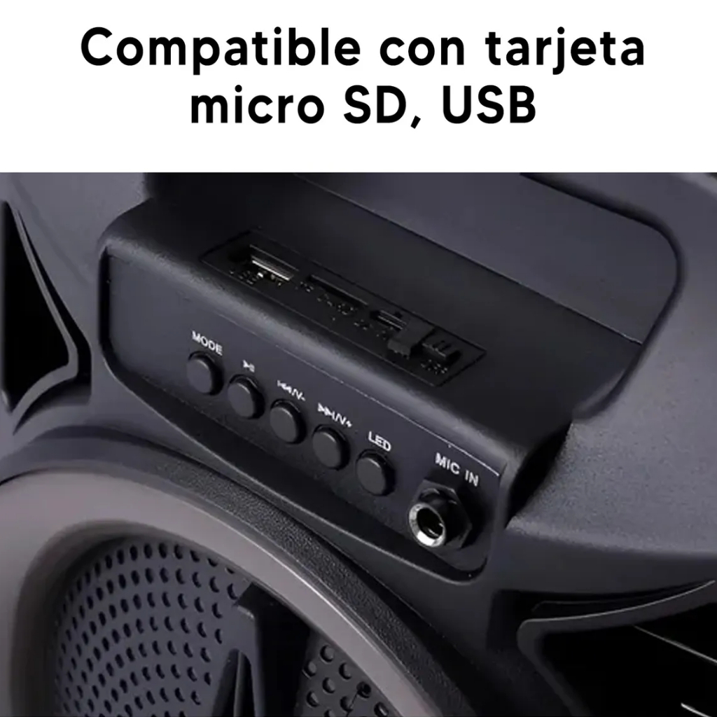 Caixa de Som Bluetooth Portátil 2200W PMPO Potente com LED RGB/Microfone/USB/SD/Aux e Karaokê