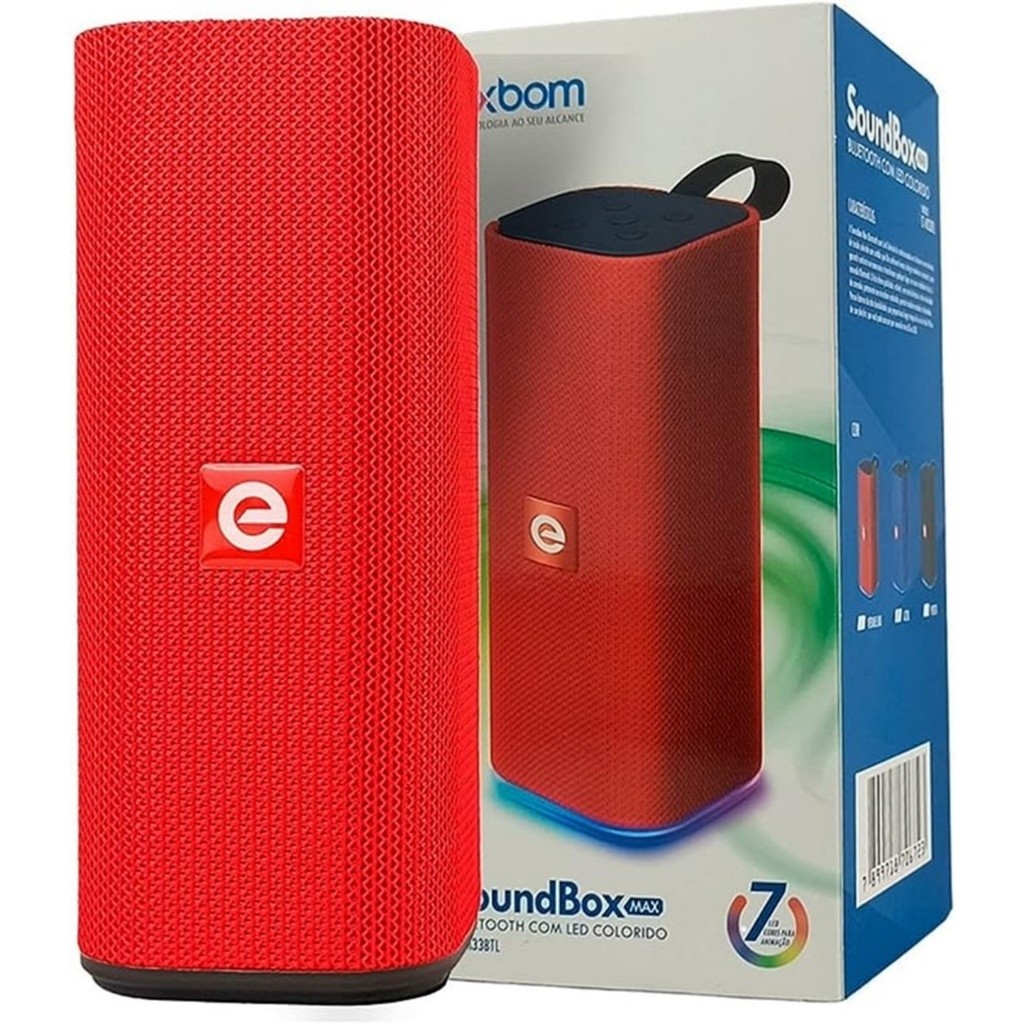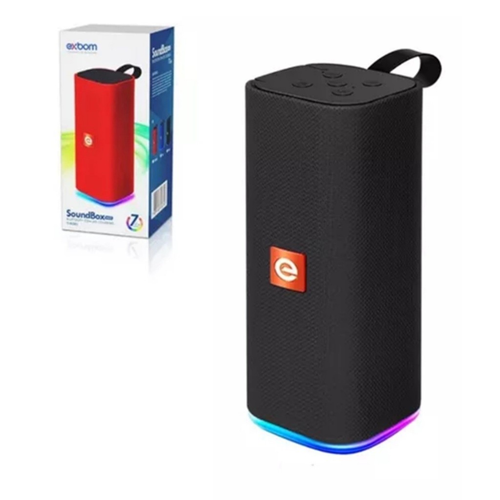 Caixa de Som Bluetooth Portátil Exbom LED RGB 31BTL 33BTL 5W e 10W Alta Potência FM USB P2 Som 3D