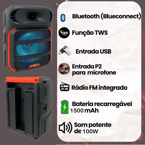 Caixa de Som Bluetooth Portátil Potente LED RGB TWS FM C/microfone 100W para Festa Viagem Praia