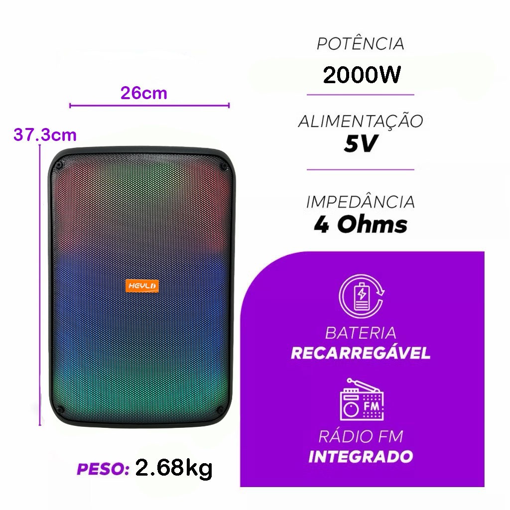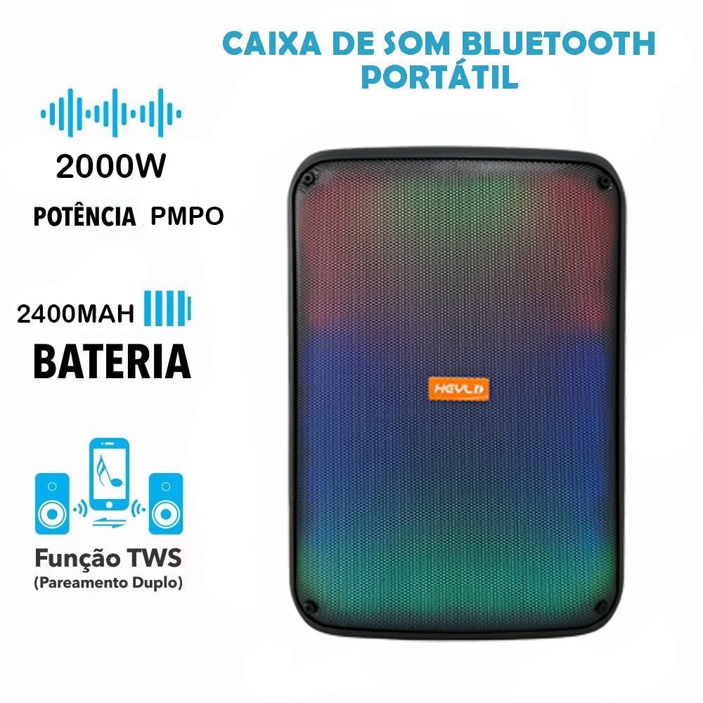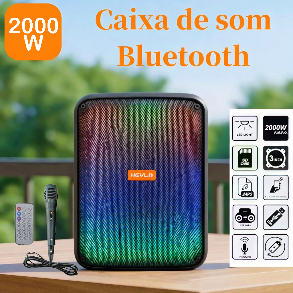 Caixa de Som Bluetooth Portátil Potente LED RGB TWS FM C/microfone 2000W para Festa Viagem Praia
