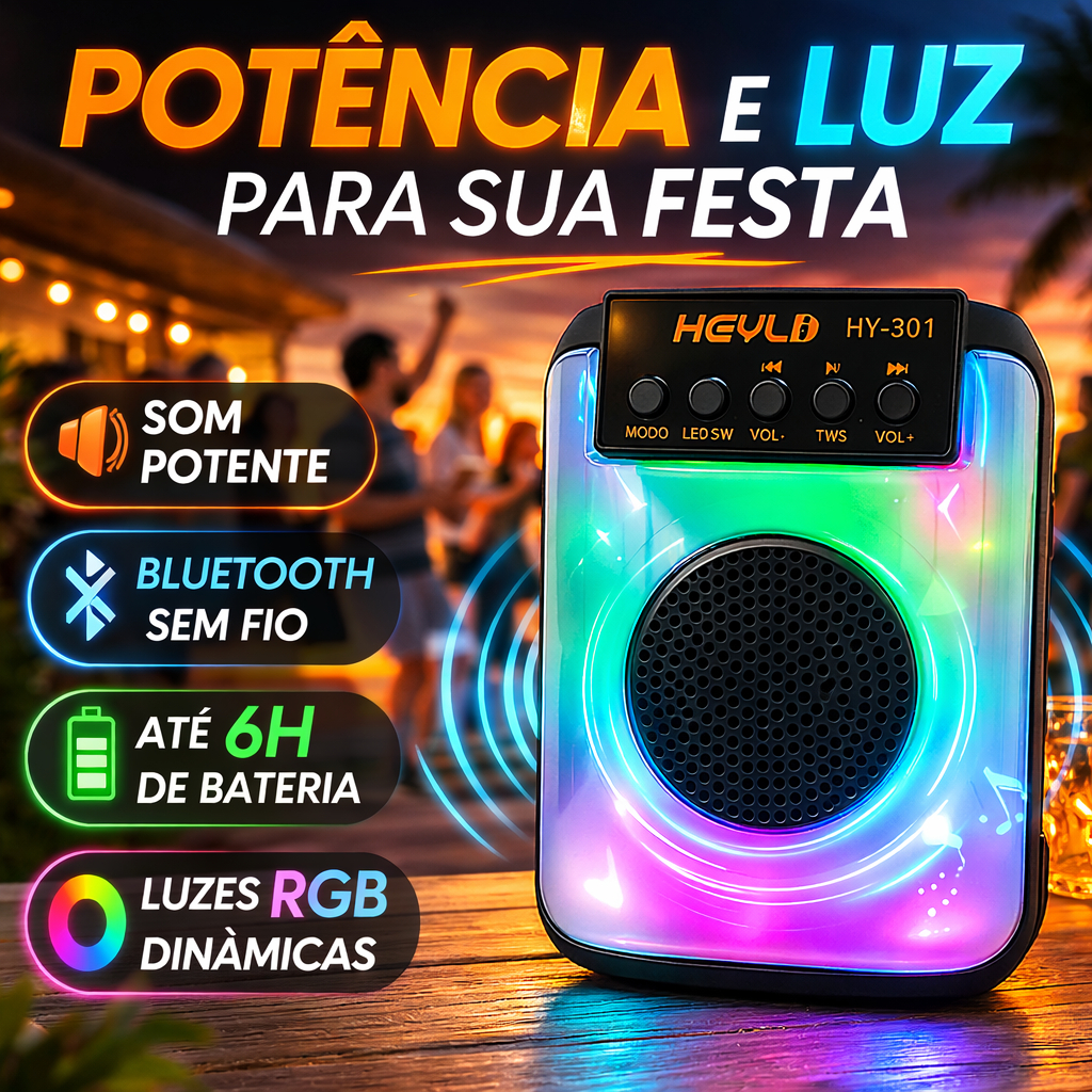 Caixa de Som Bluetooth Portátil Potente LED RGB TWS FM PMPO 2000W para Festa Viagem Praia