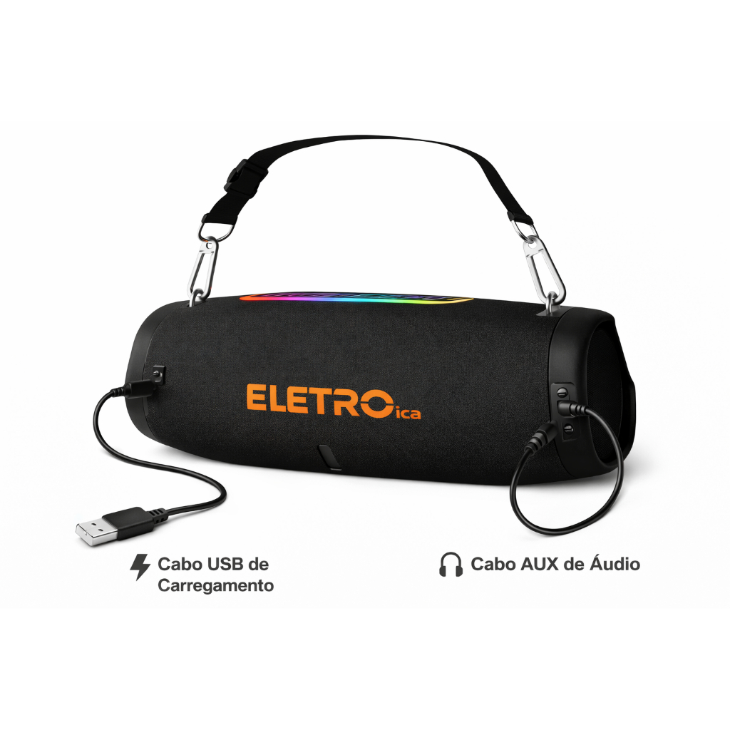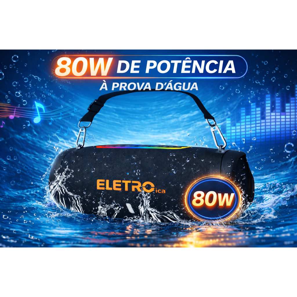 Caixa de Som Bluetooth Portátil RGB 80W à Prova d’Água com Alça – Eletromex EL-1142