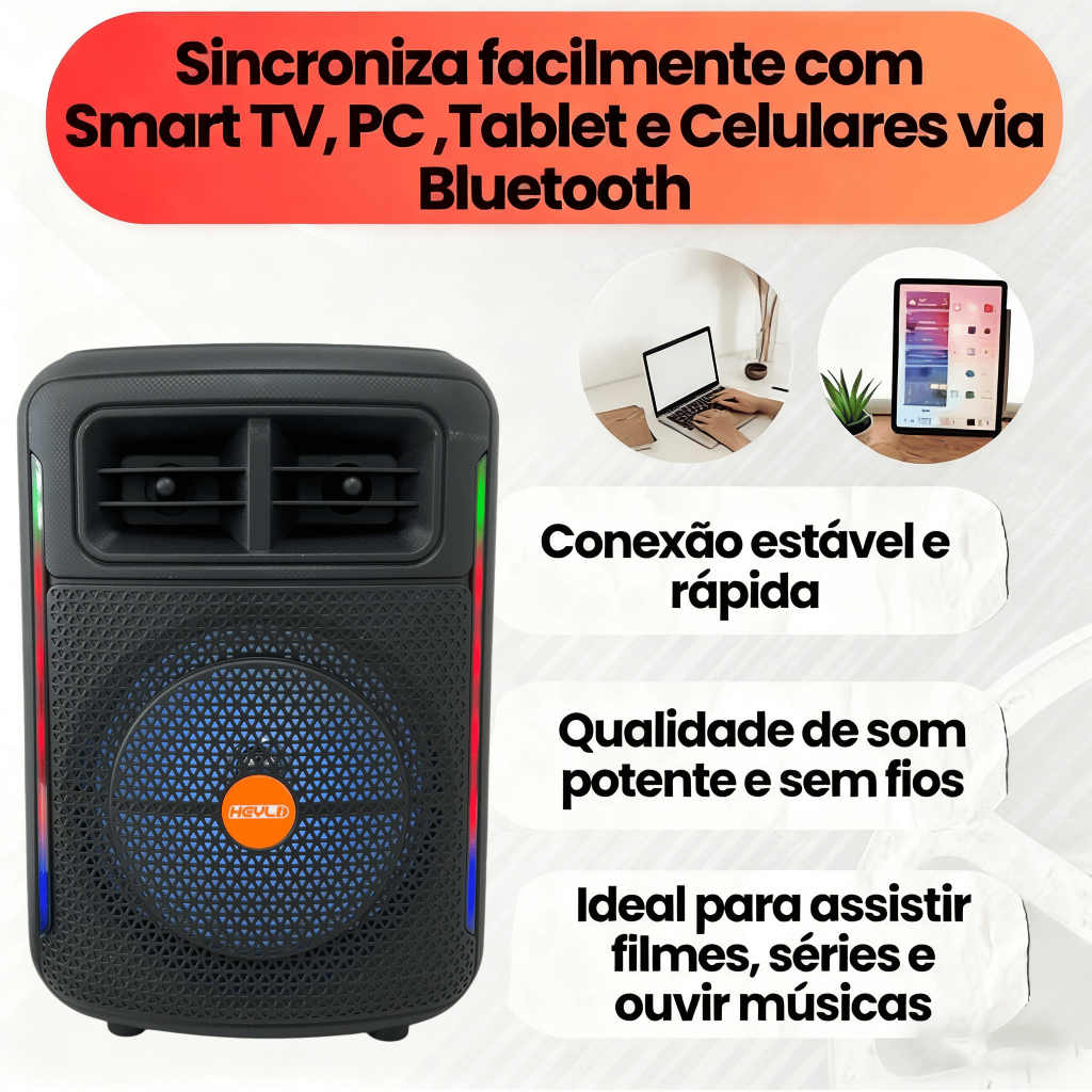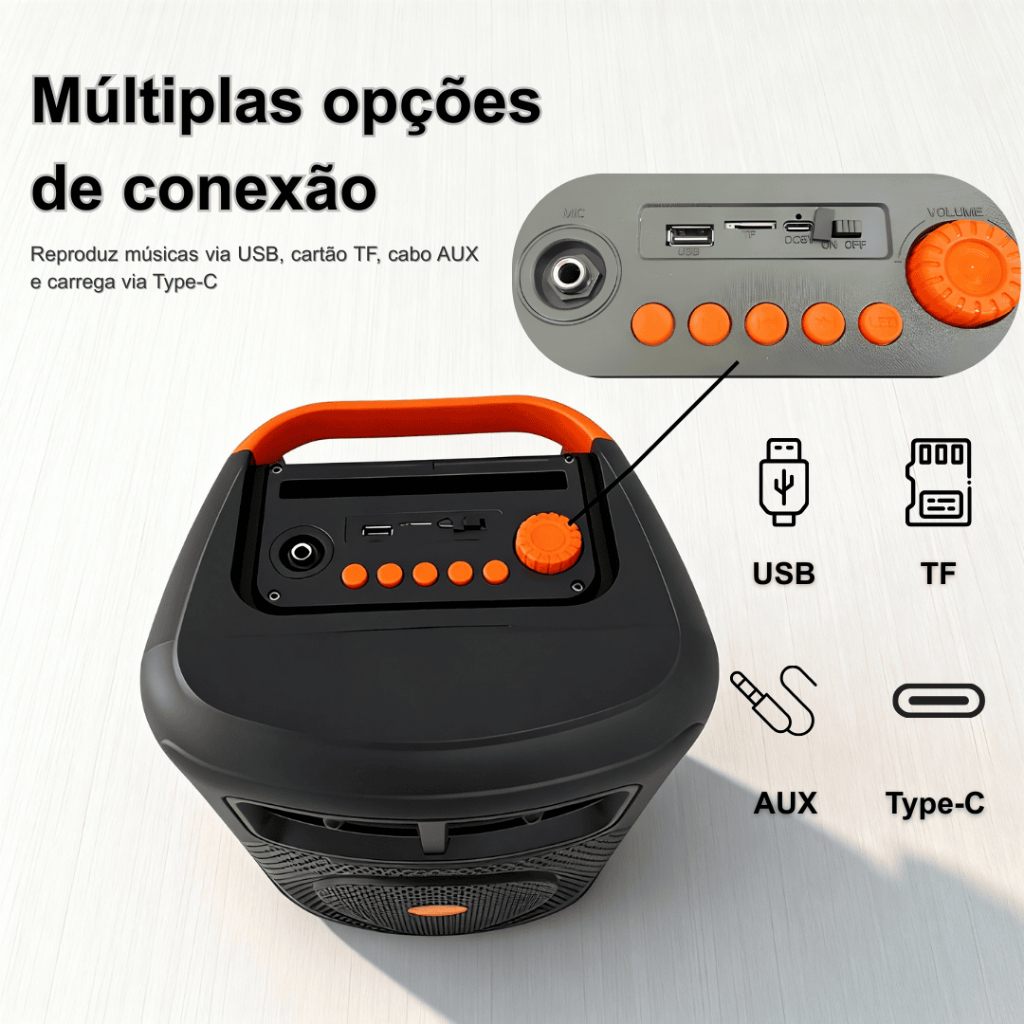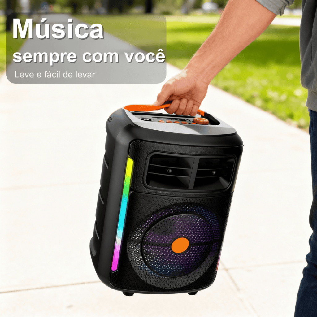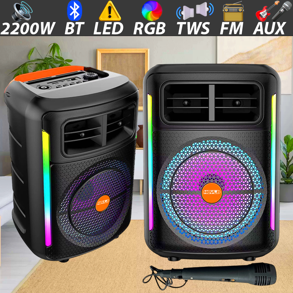 Caixa de Som Bluetooth Portátil c/Microfone Potente 2200w LED RGB IPX6 USB TWS FM para Festa