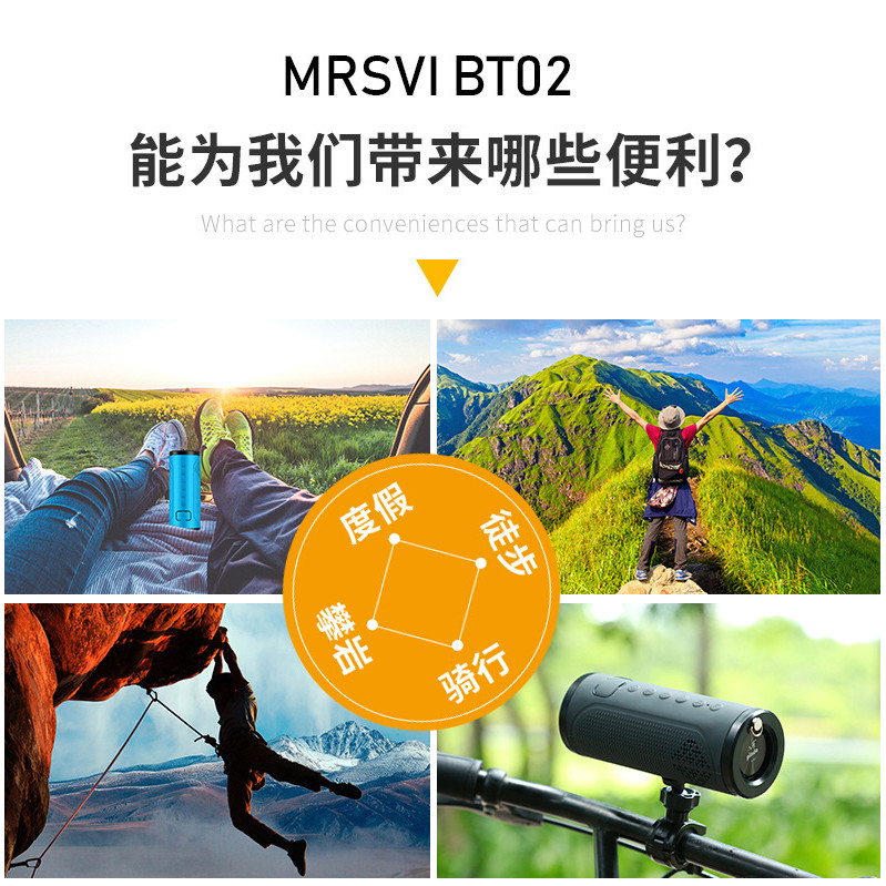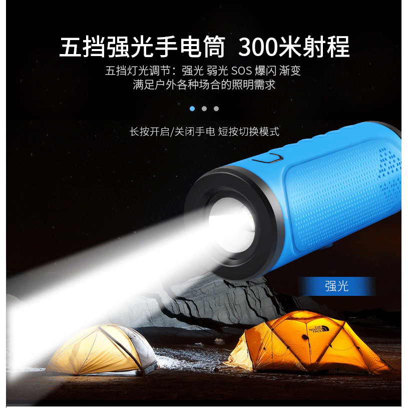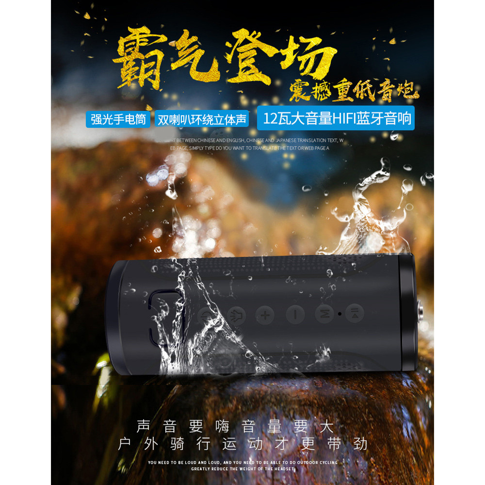 Caixa de Som Bluetooth Portátil para Exterior Subwoofer de Bicicleta Lanterna Sem Fio Alto Volume Recarregável com Slot