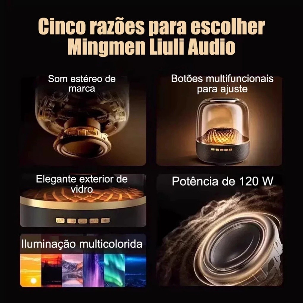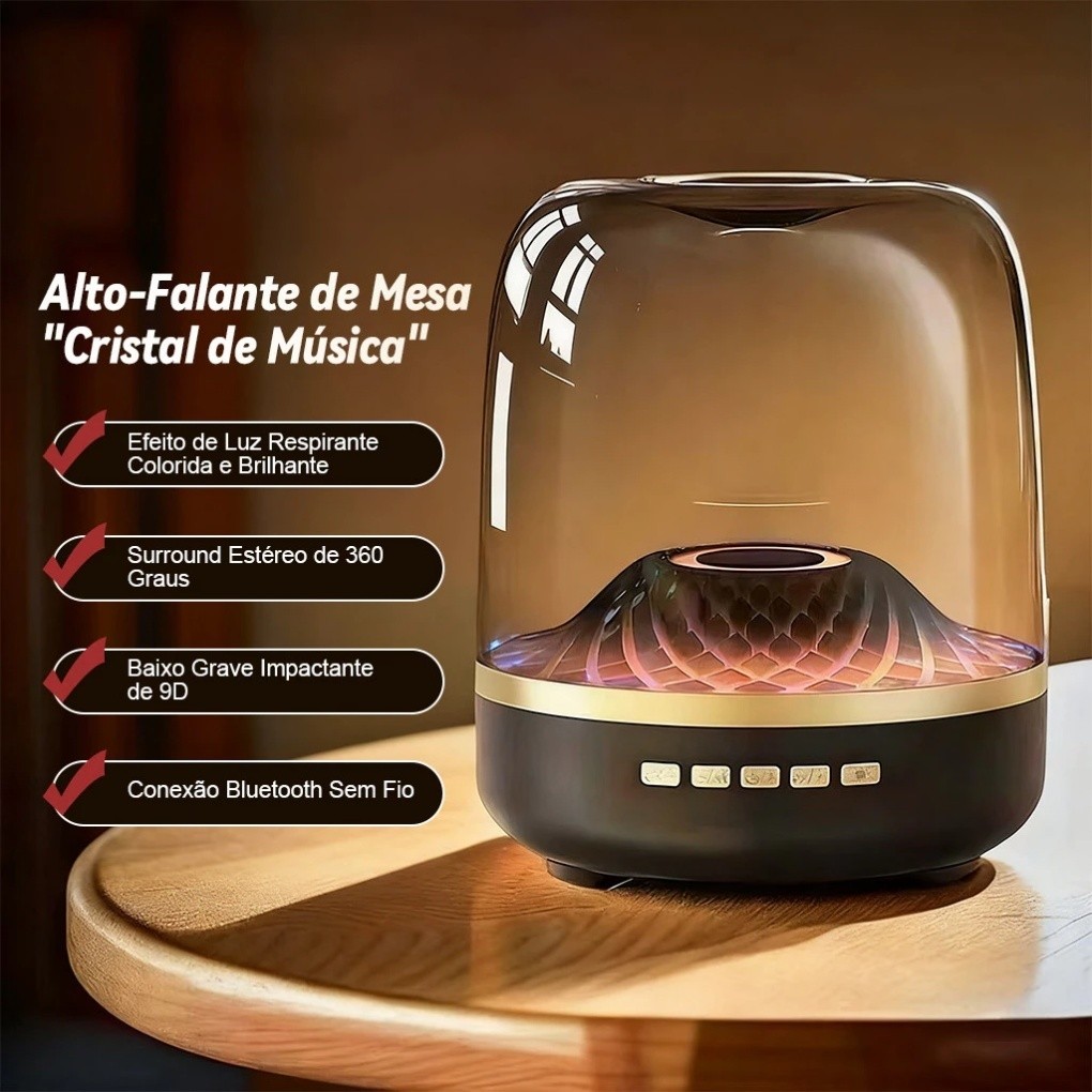 Caixa de Som Bluetooth Potente com Subwoofer, Graves Profundos e Design em Vidro LED