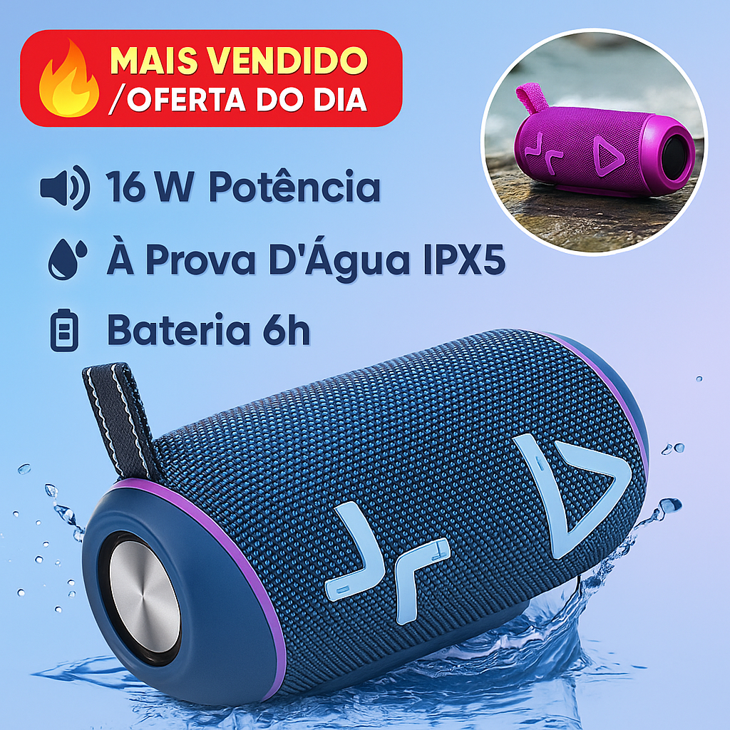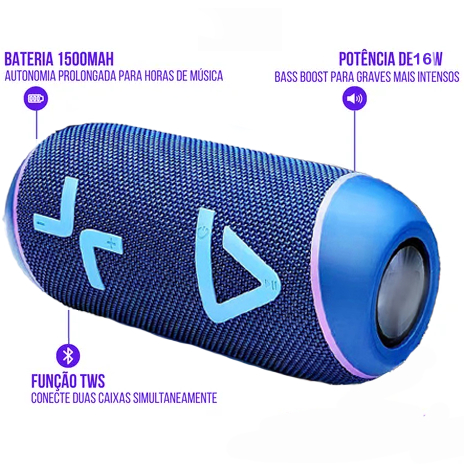 Caixa de Som Bluetooth Sem Fio 16w Luz RGB Led Mini TWS Recarregável Colorida Para SD/USB-HY-695