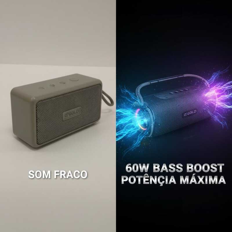 Caixa de Som Bluetooth Versátil Resistente a Água 60W Alto Falante Duplo Luz RGB A'gold Original SM-15