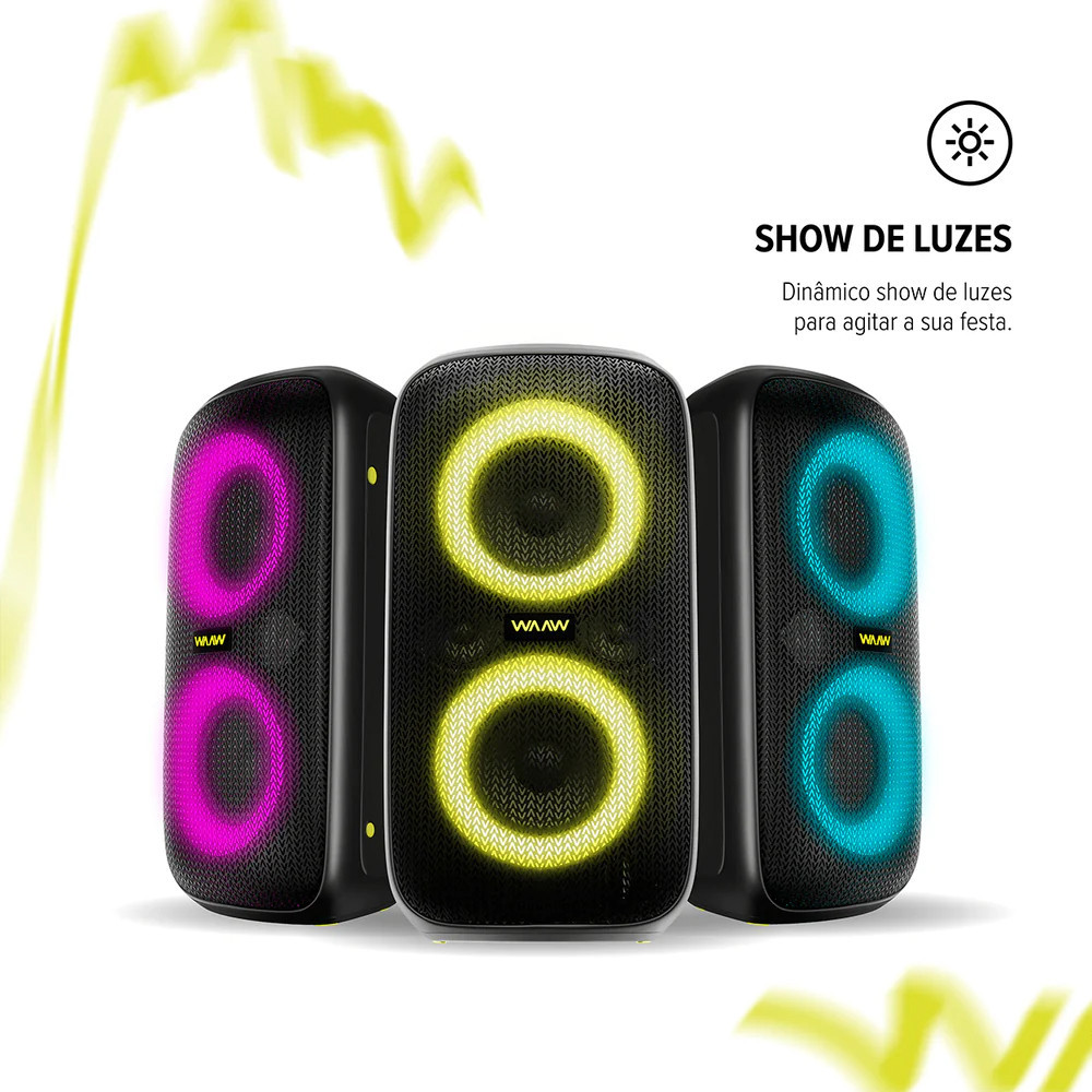 Caixa de Som Bluetooth WAAW Infinite 100 IPX4 Stereo Conexão TWS 4 Alto Falantes Bateria de Até 14H