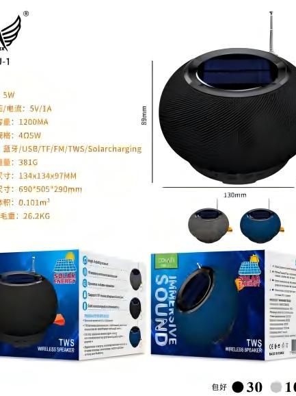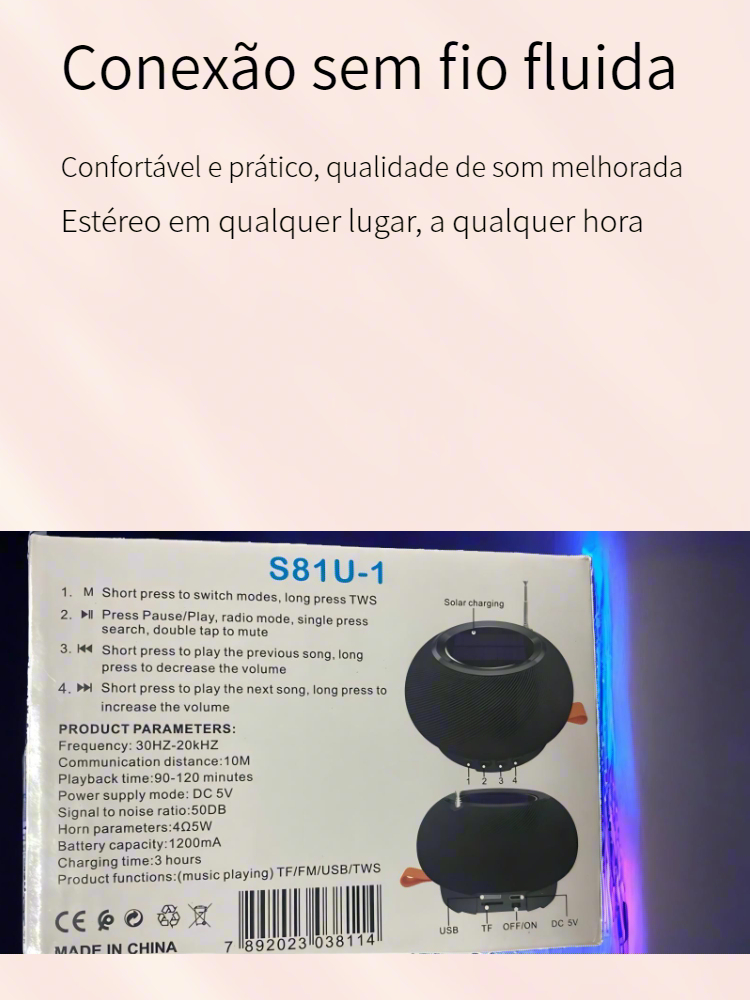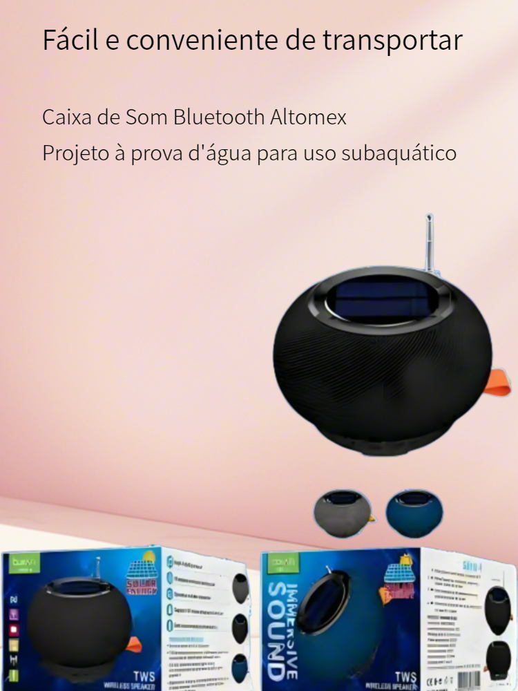 Caixa de Som Bluetooth com Antena 5W Carregamento Solar Altomex S81U-1