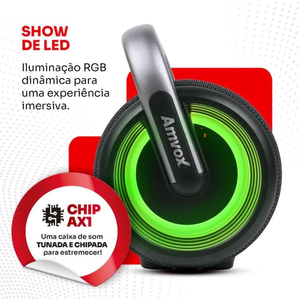 Caixa de Som Boombox Amvox ACA 610 Ronaldinho Black 610W Até 12h bateria Bluetooth a Prova D’água