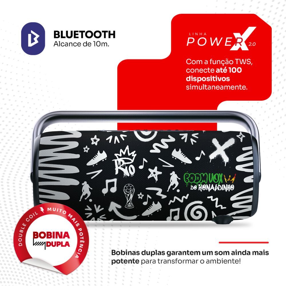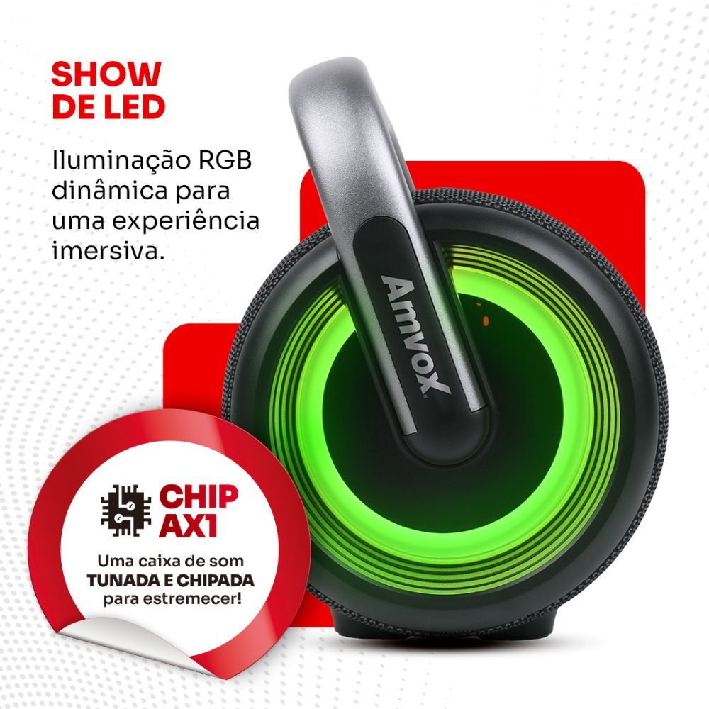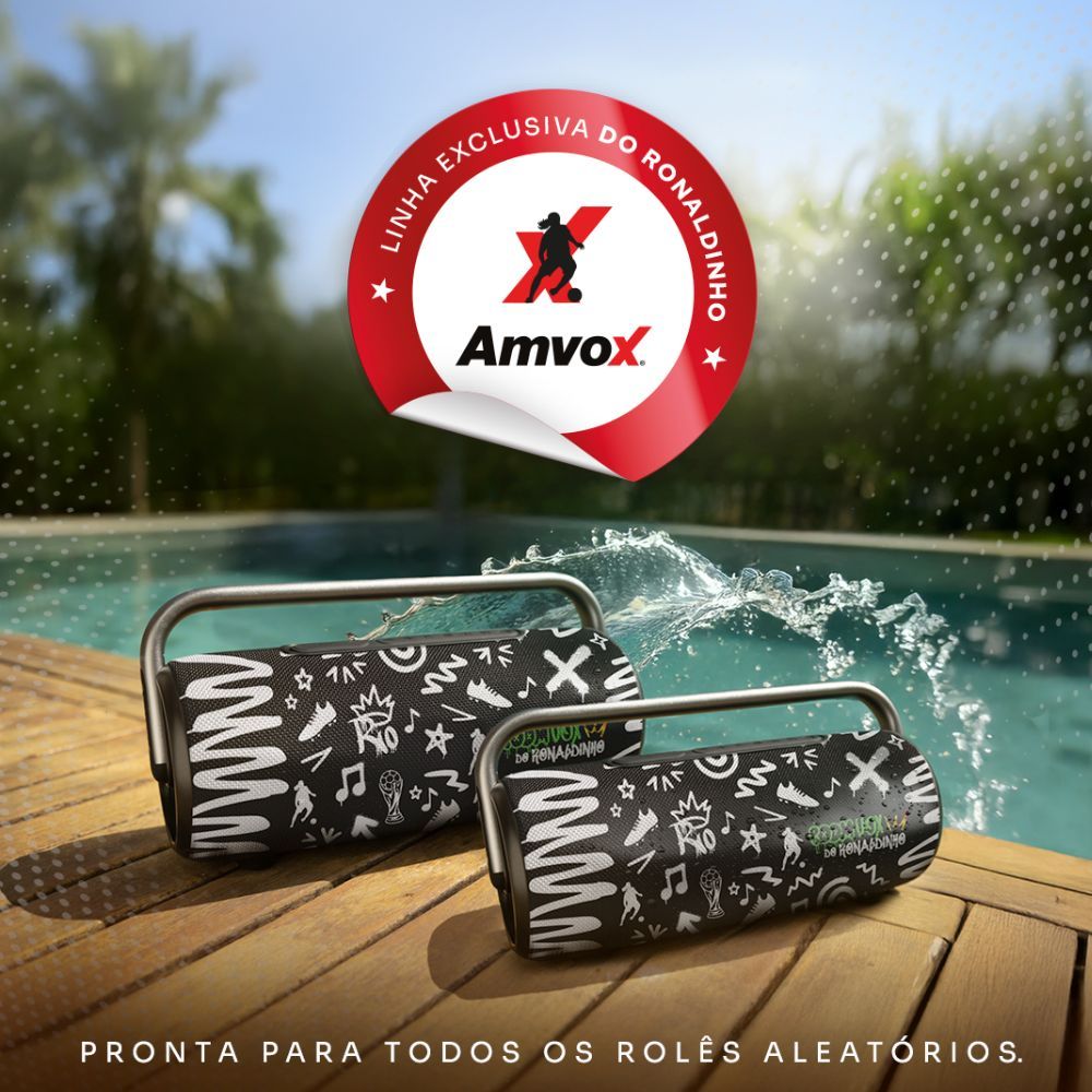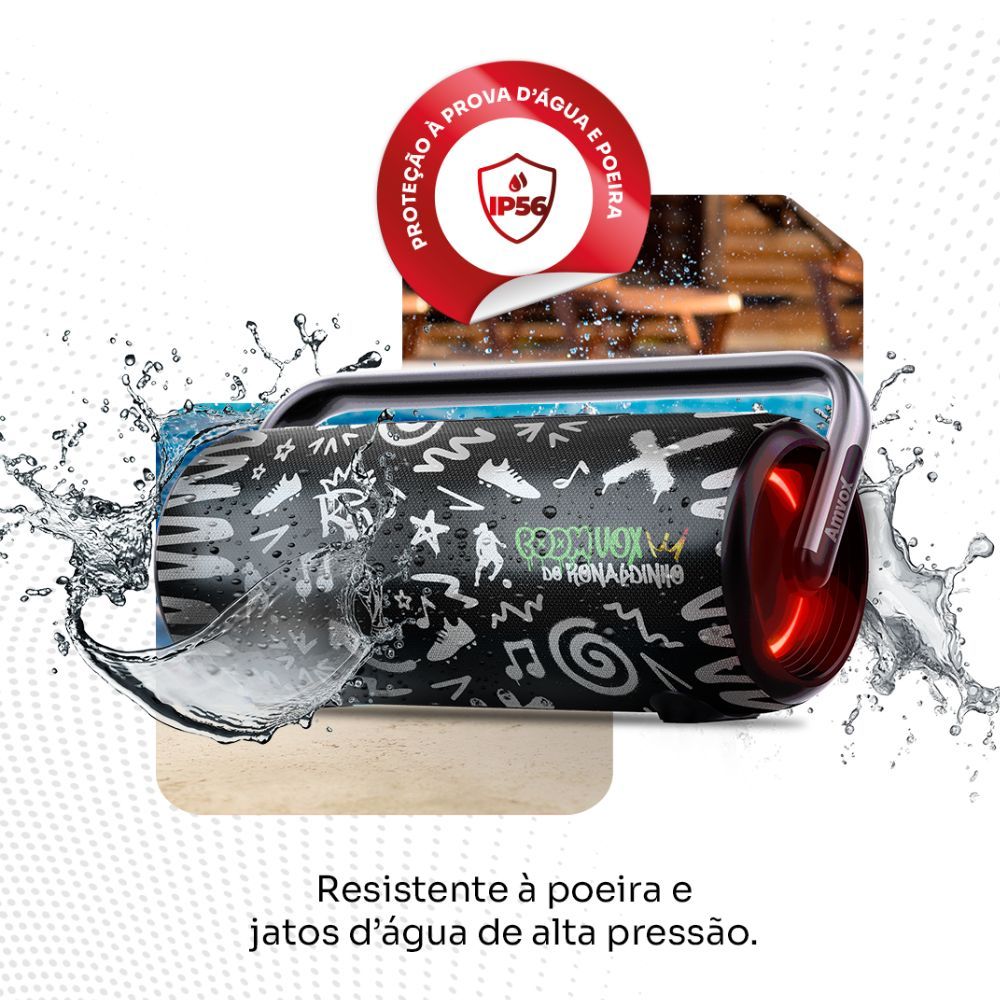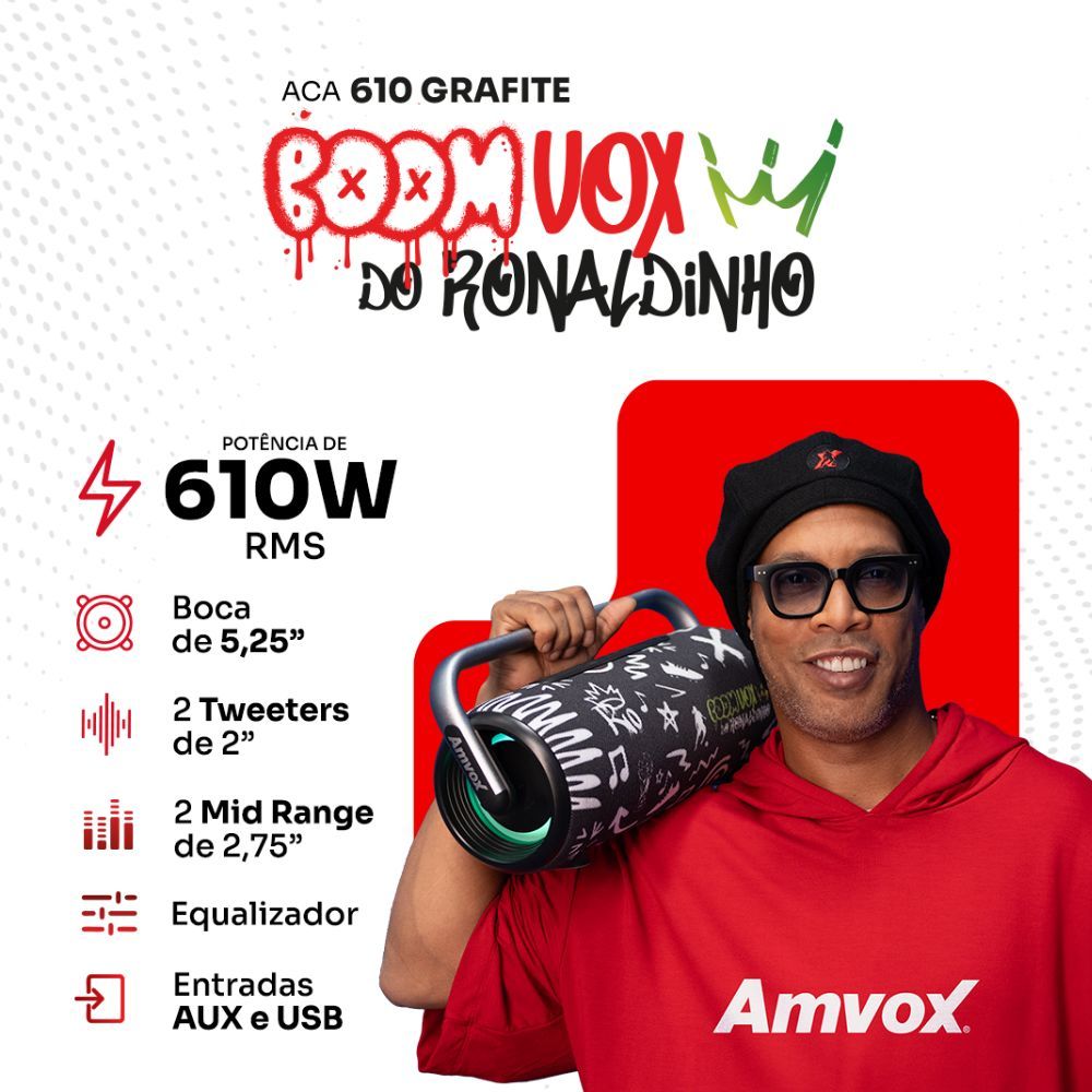 Caixa de Som Boombox Amvox ACA 610 Ronaldinho Grafite 610W Até 12h bateria Bluetooth a Prova D’água