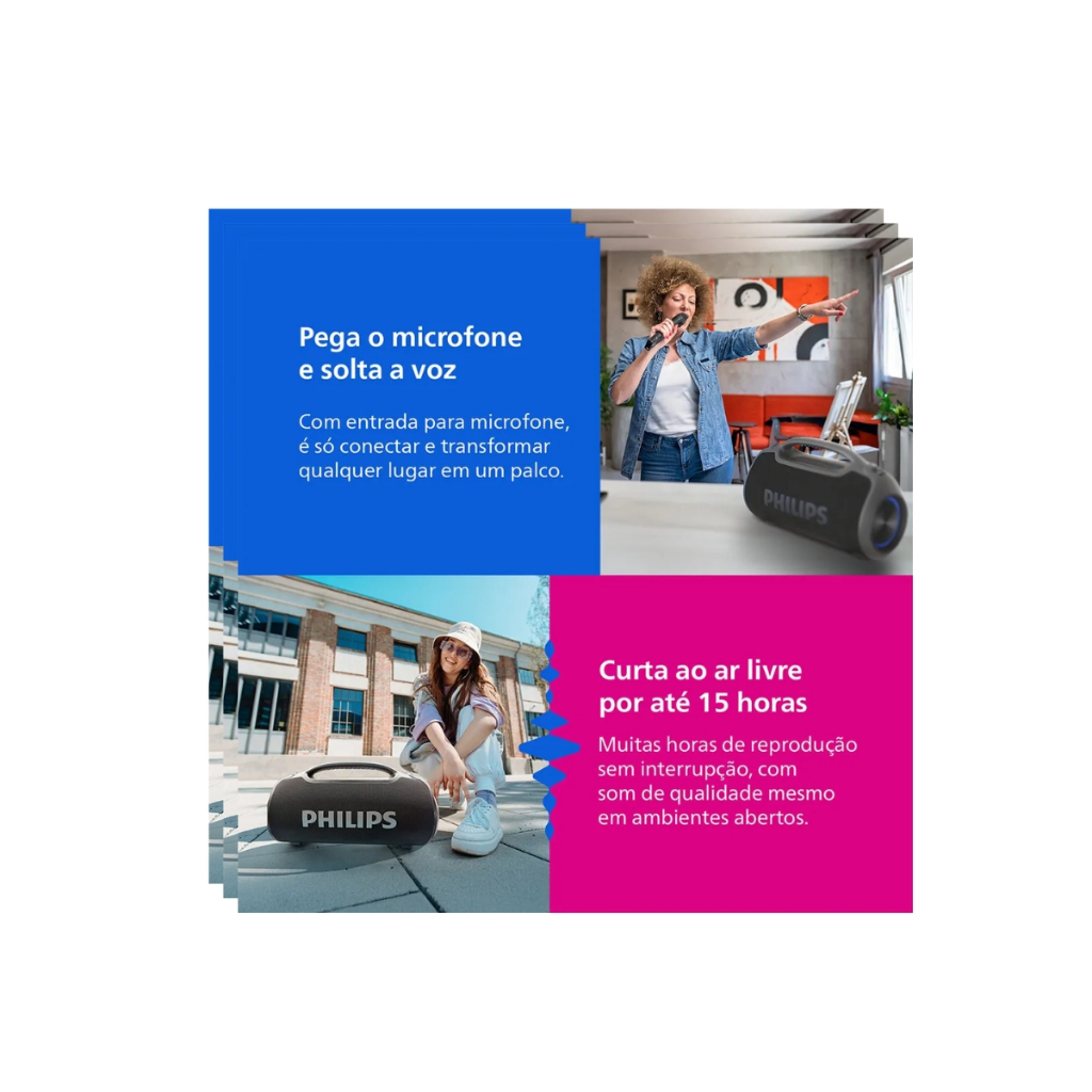 Caixa de Som Boombox Philips Boombeat 200W RMS Bluetooth Power Bank IP66