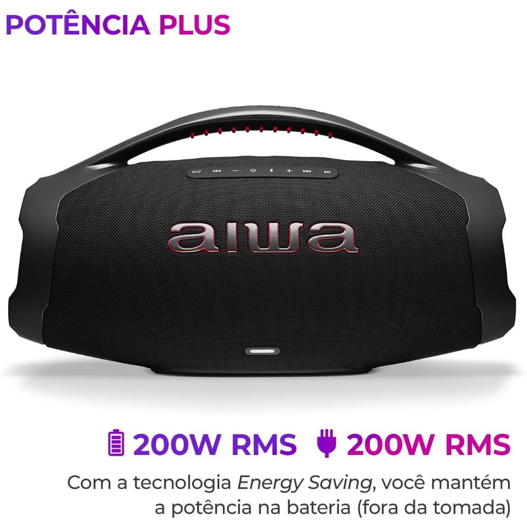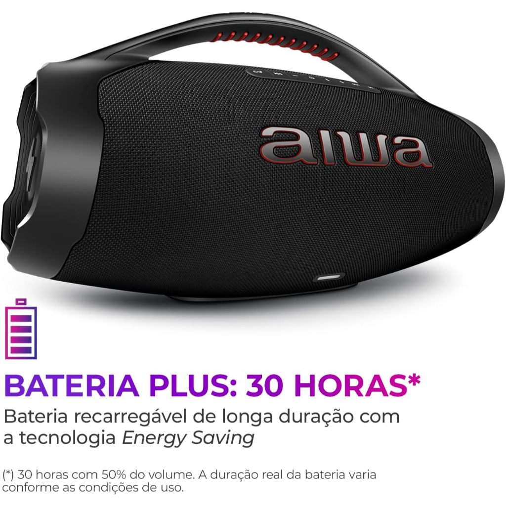 Caixa de Som Boombox Plus Bluetooth AIWA 30 horas IP66 AWS-BBS-01B Preto