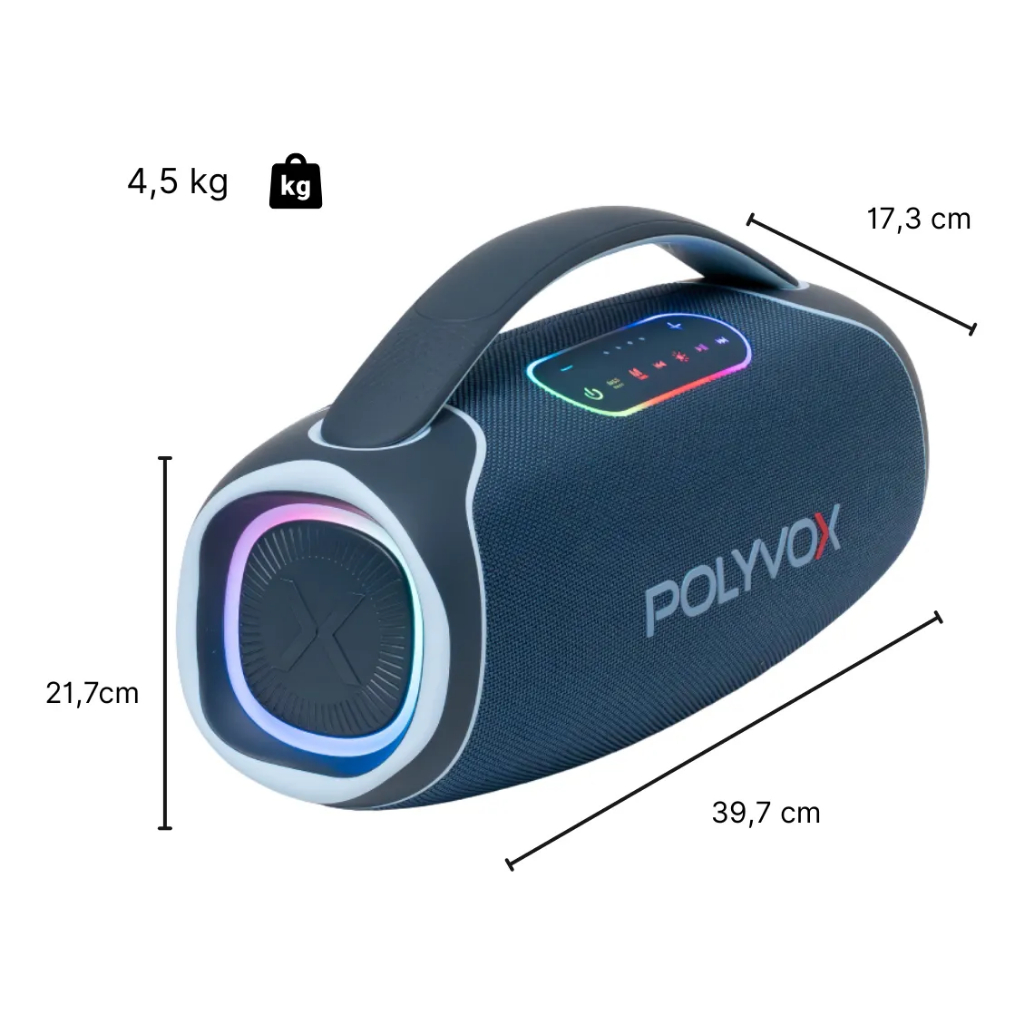 Caixa de Som Boombox Polyvox XB-2 140W Bluetooth com Show de Luzes RGB e Bateria 15h