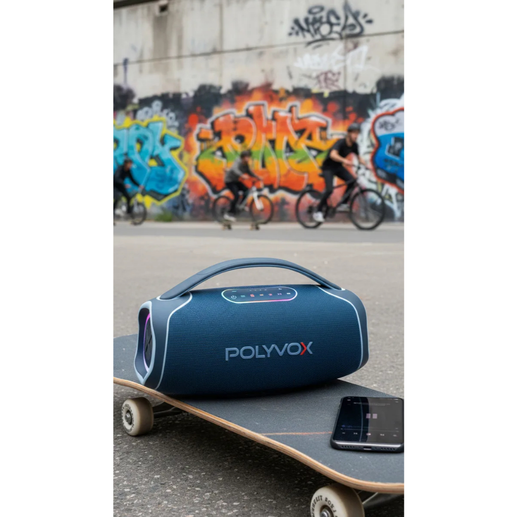 Caixa de Som Boombox Polyvox XB-2 140W Bluetooth com Show de Luzes RGB e Bateria 15h