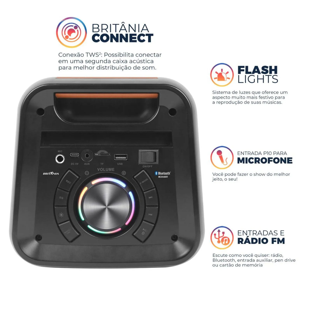 Caixa de Som Britânia BCX4601 Flash Lights Bluetooth V5.3 350W - Bivolt