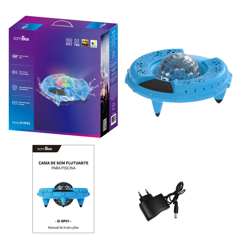 Caixa de Som Flutuante Bluetooth 180W RMS Hi-Fi RGB IPX7 Som 360 Graus Bateria
