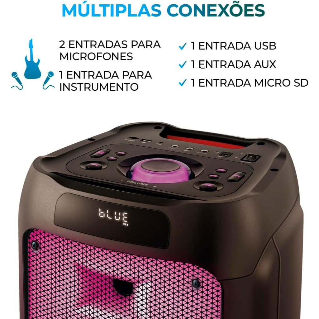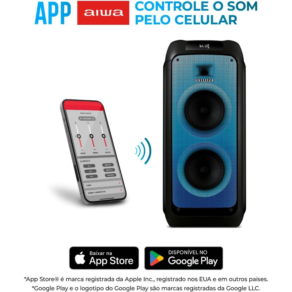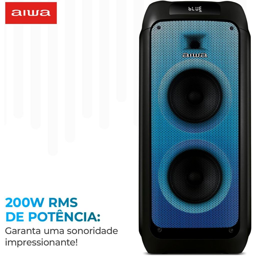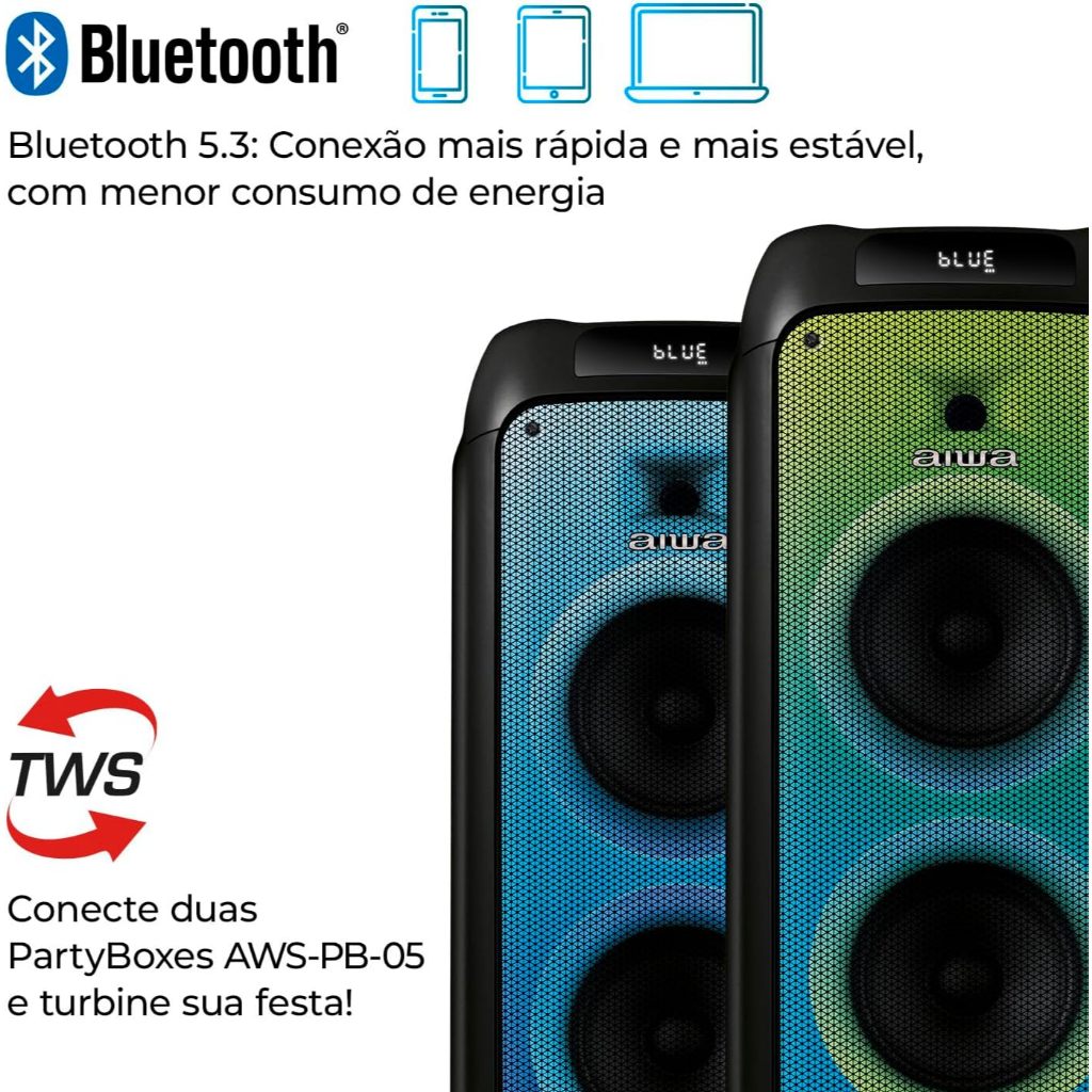 Caixa de Som PartyBox AIWA PB-05 Bluetooth 20H RGB USB TWS Preto