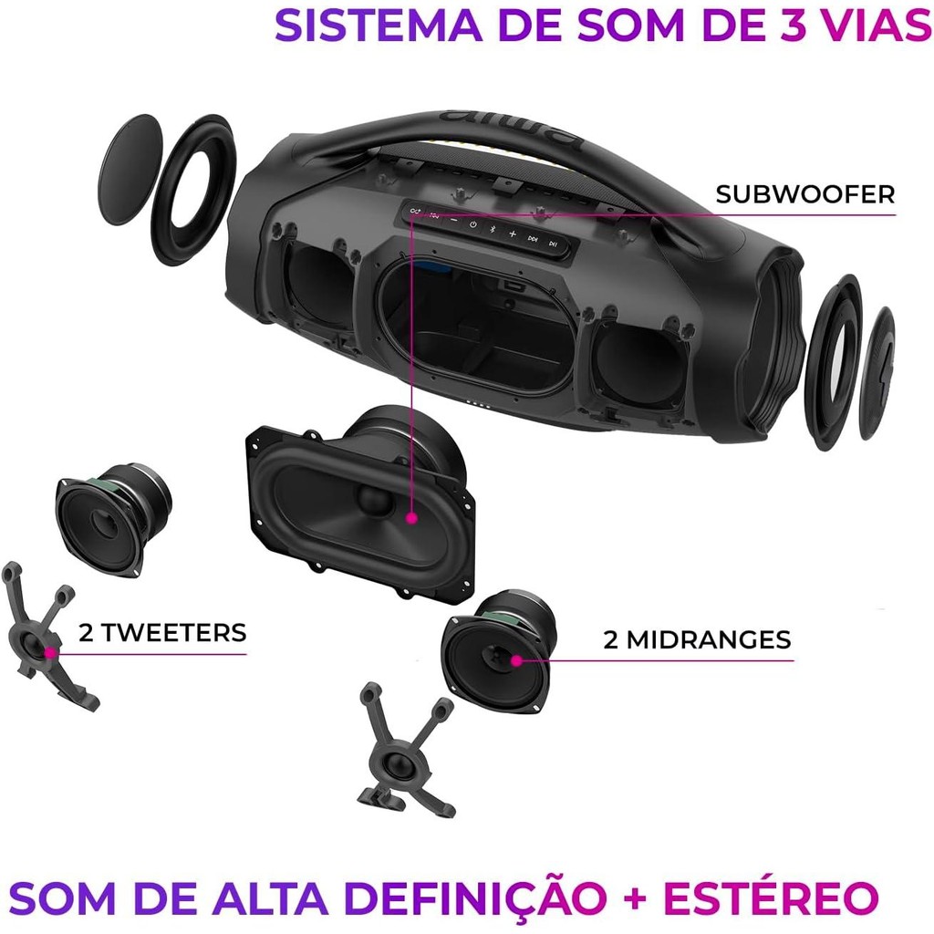 Caixa de Som Portátil BT Aiwa Boombox BBS-01LB 9531-01 Azul