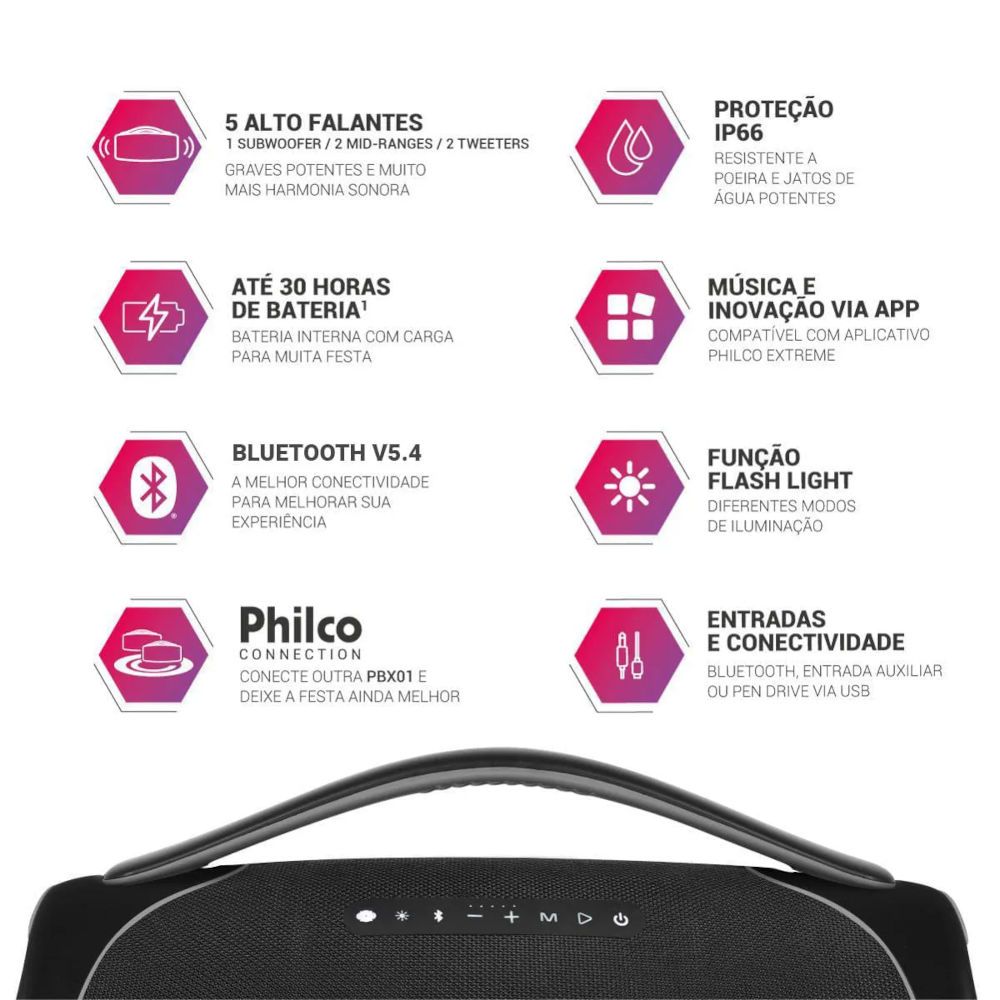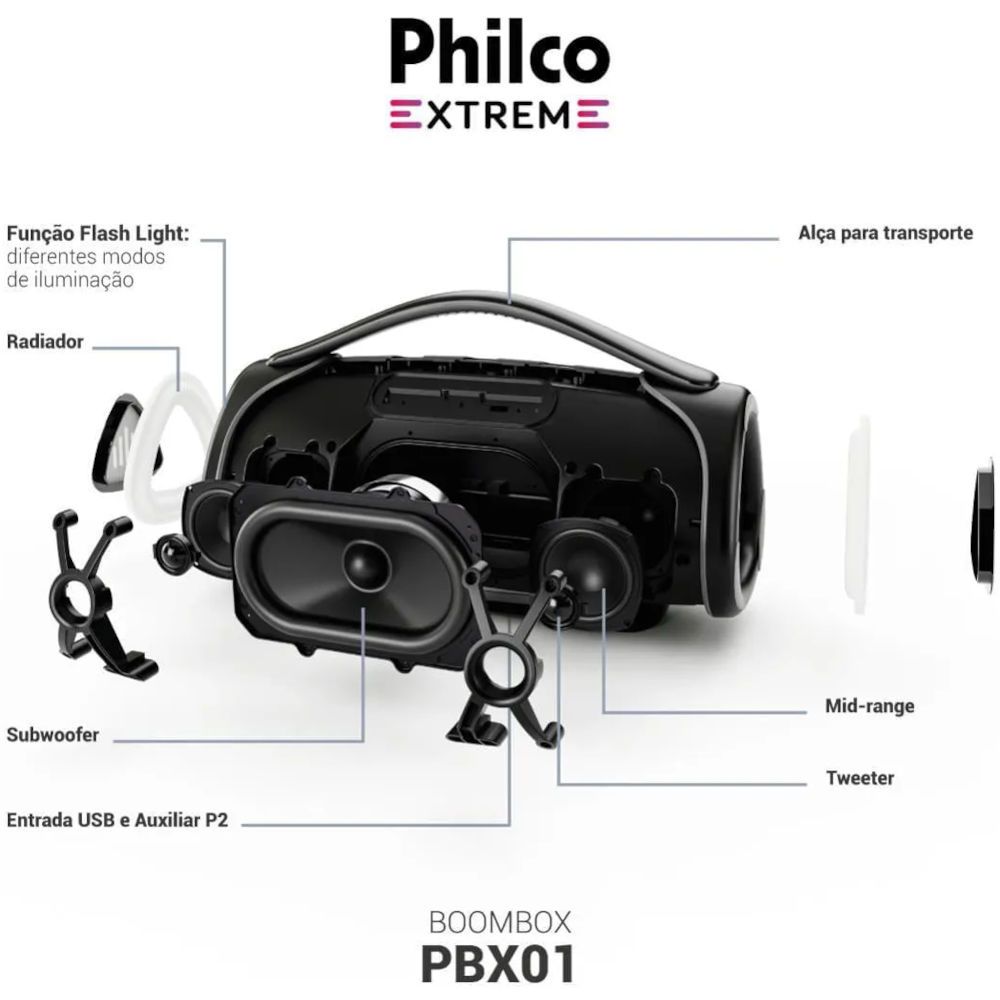 Caixa de Som Portátil Philco BoomBox PBX01 com Bateria 300W