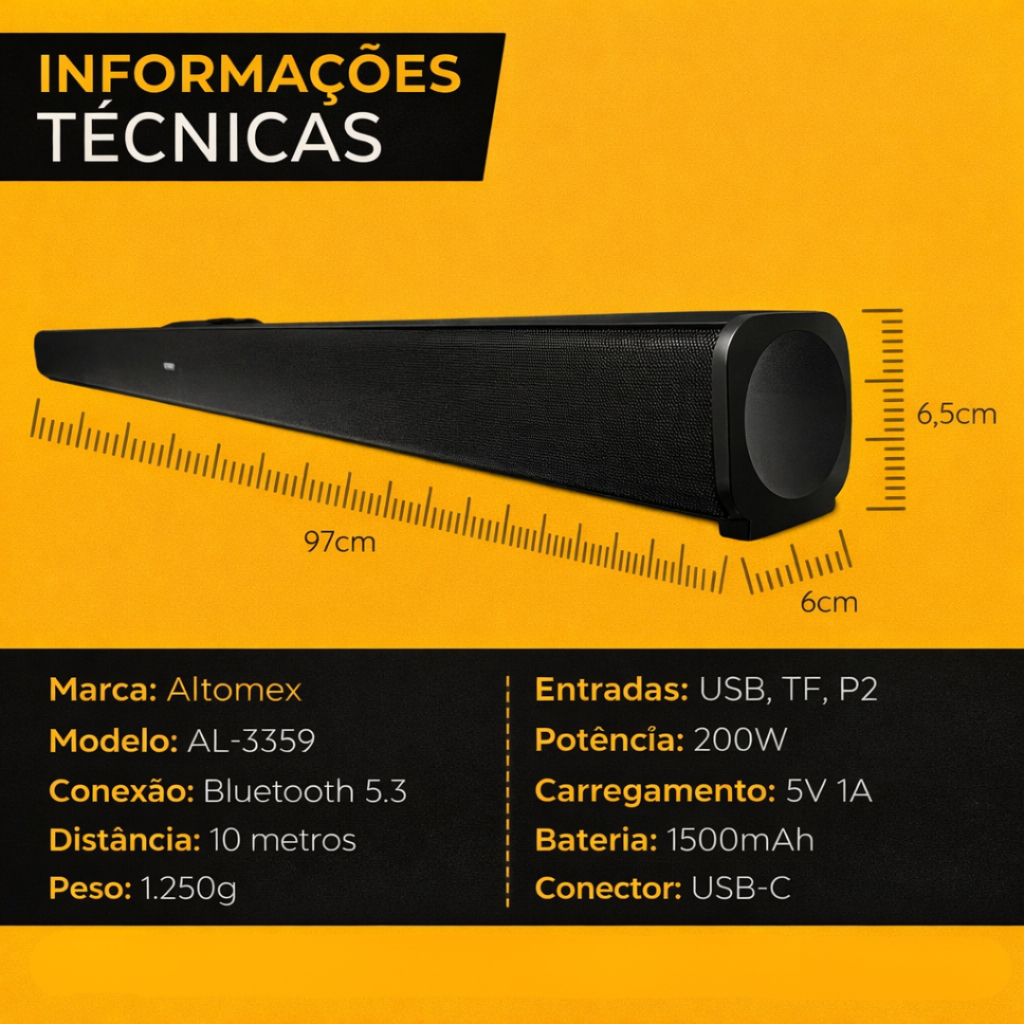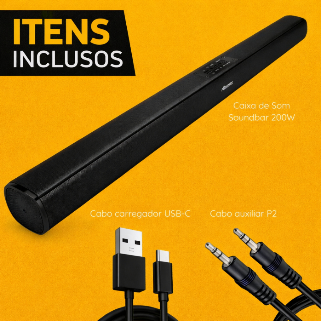 Caixa de Som Sound Bar Home Theater Bluetooth Para Tv Cinema 200w Cor Preto