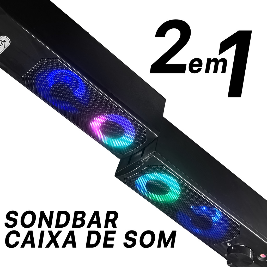 Caixa de Som SoundBar Pc Gamer Subwoofer P2 Led Rgb Pc Notebook Celular Tablet