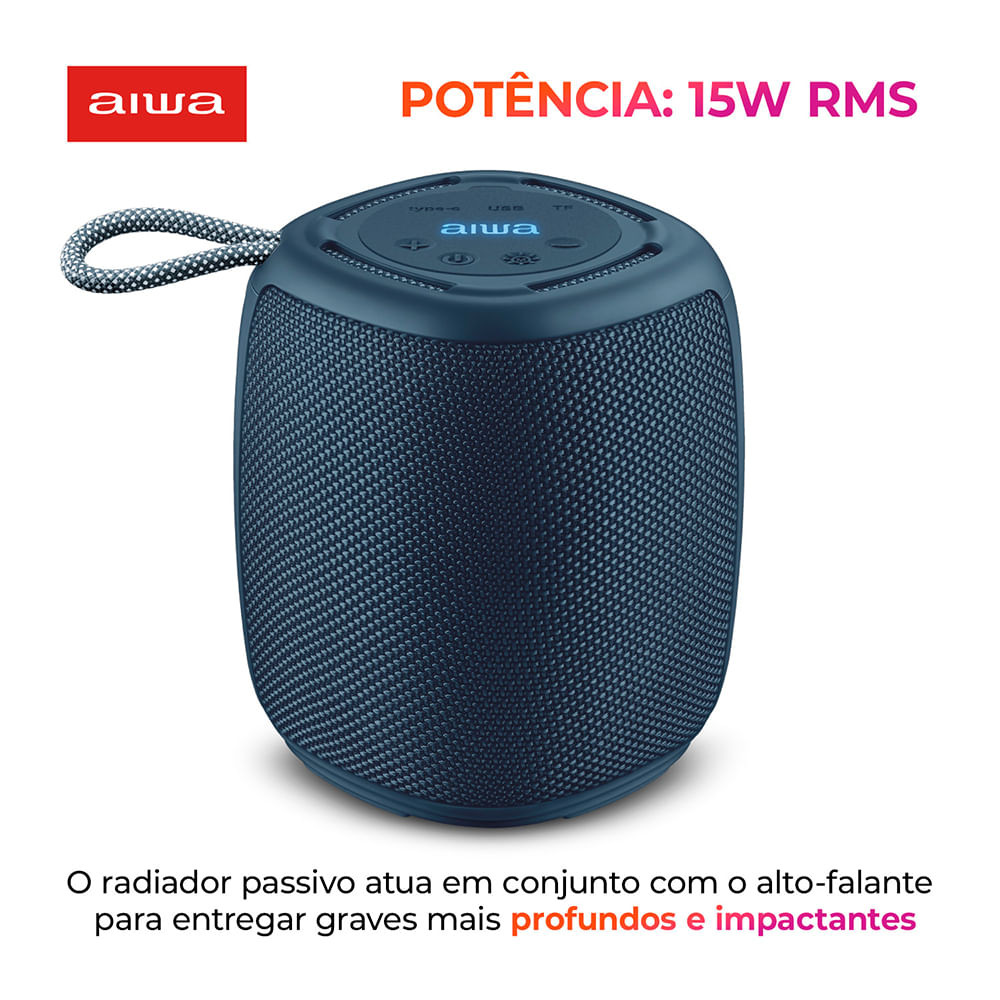 Caixa de Som Speaker AIWA SP-03-BL 15W Bluetooth IPX4 RGB