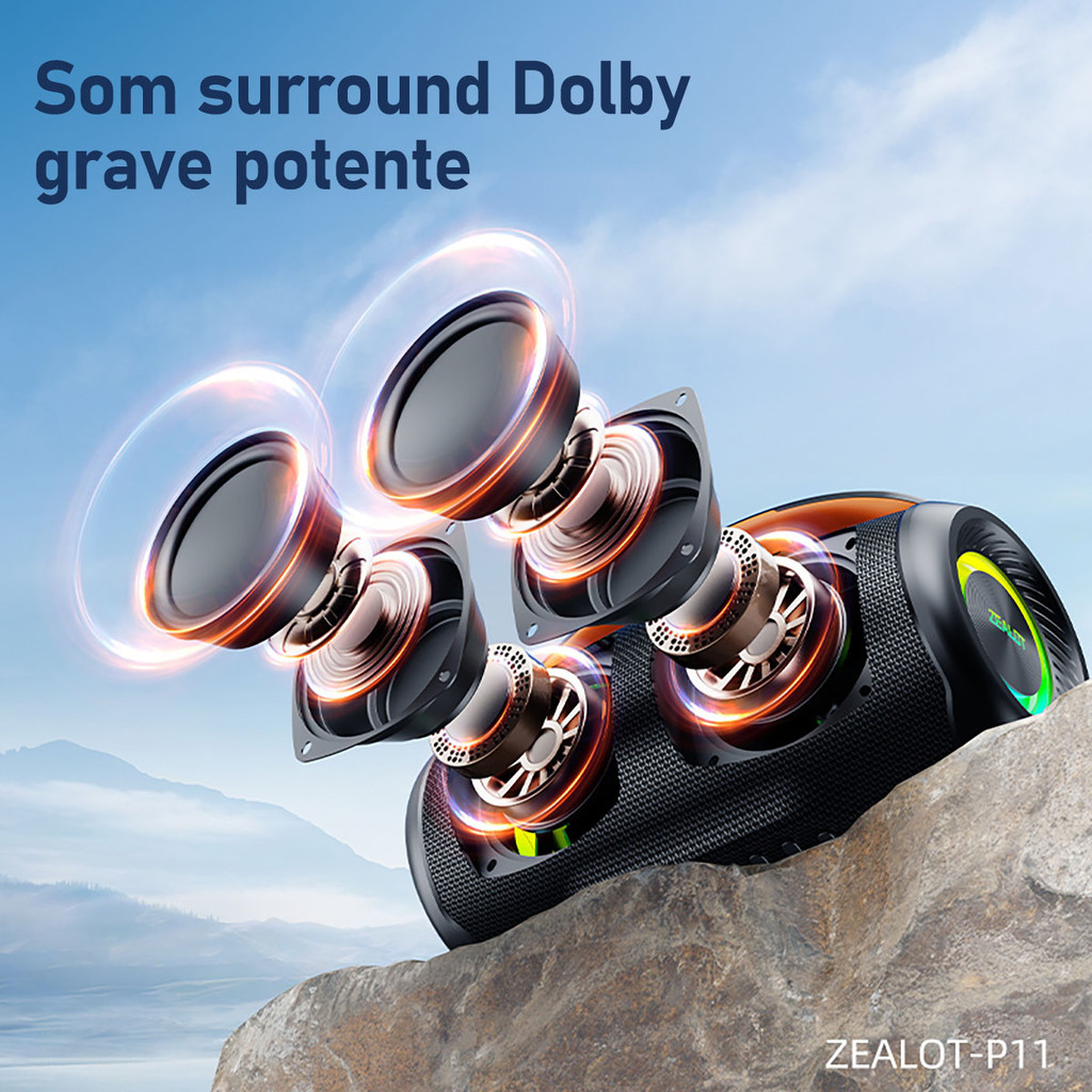 Caixa de Som para Festa ZEALOT P12 60W - LED RGB Dinâmico TWS Stereo Bass Profundo Portátil