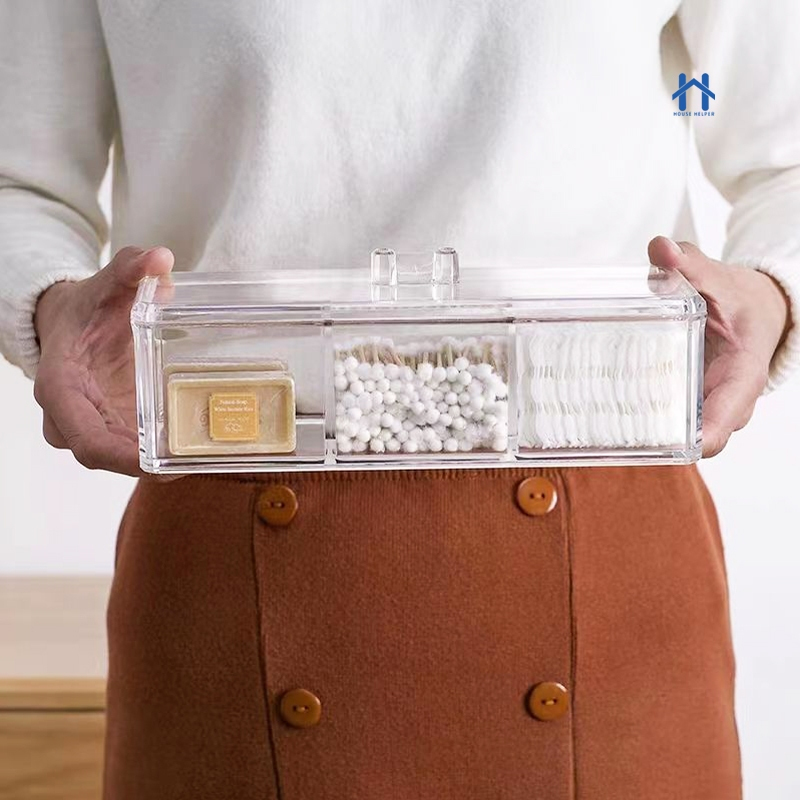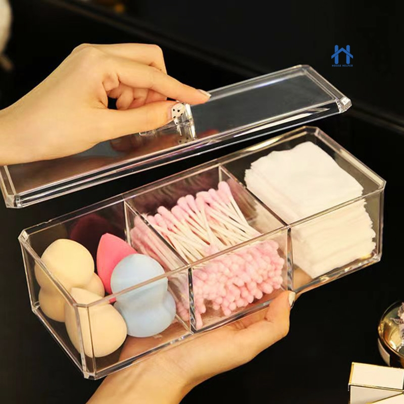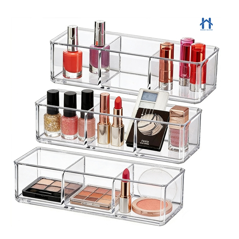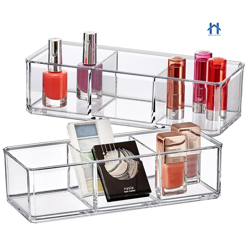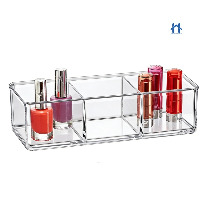 Caixa em Acrílico organizador com 3 Divisórias Transparente para Maquiagens e Jóias
