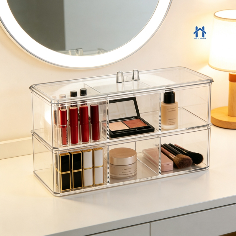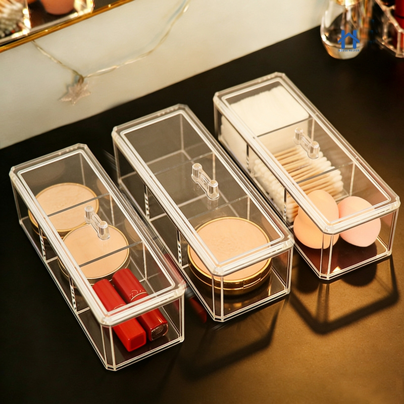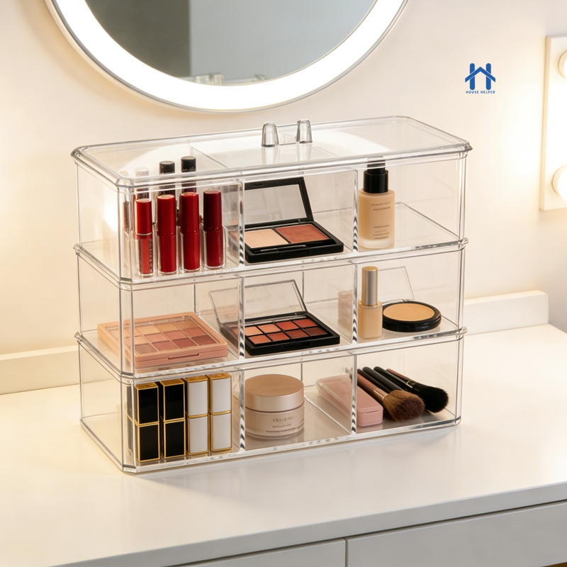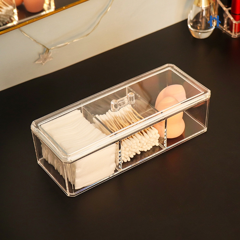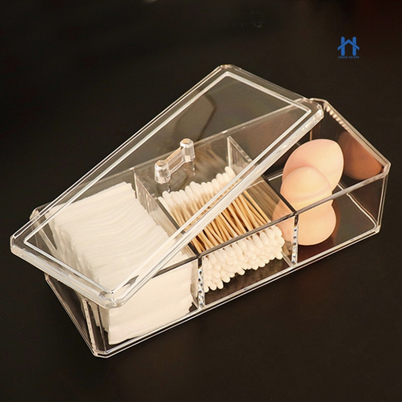 Caixa em Acrílico organizador com 3 Divisórias Transparente para Maquiagens e Jóias